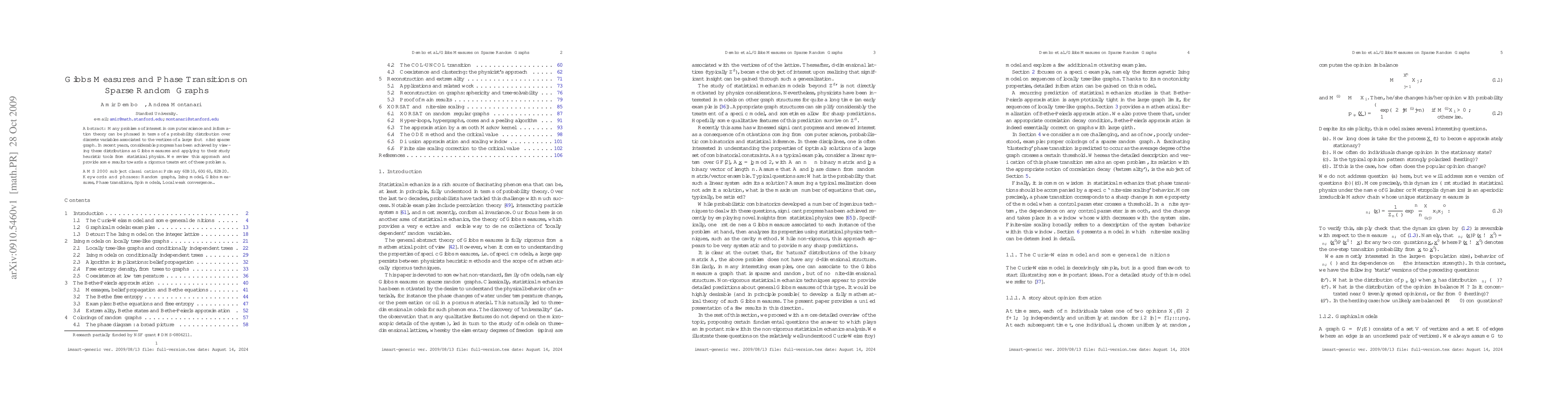 This paper reviews the application of Gibbs measures and statistical physics tools to study probability distributions over discrete variables in sparse random graphs, aiming for a rigorous treatment of phase transitions in these contexts.