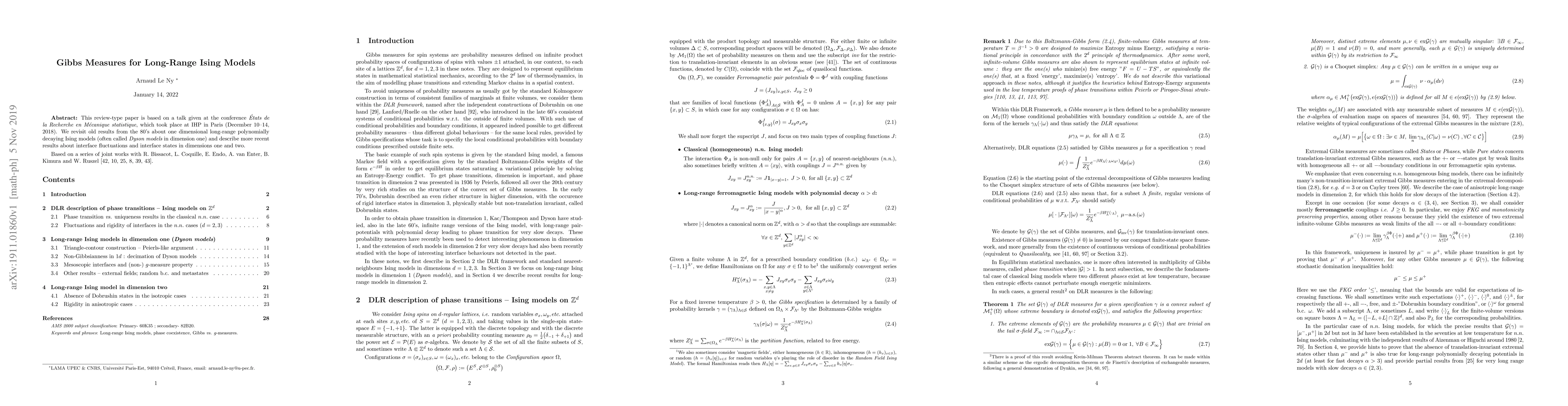 Researchers revisit and update old results on one-dimensional long-range Ising models, focusing on interface fluctuations and states in dimensions one and two, with implications for understanding phase transitions and critical behavior.