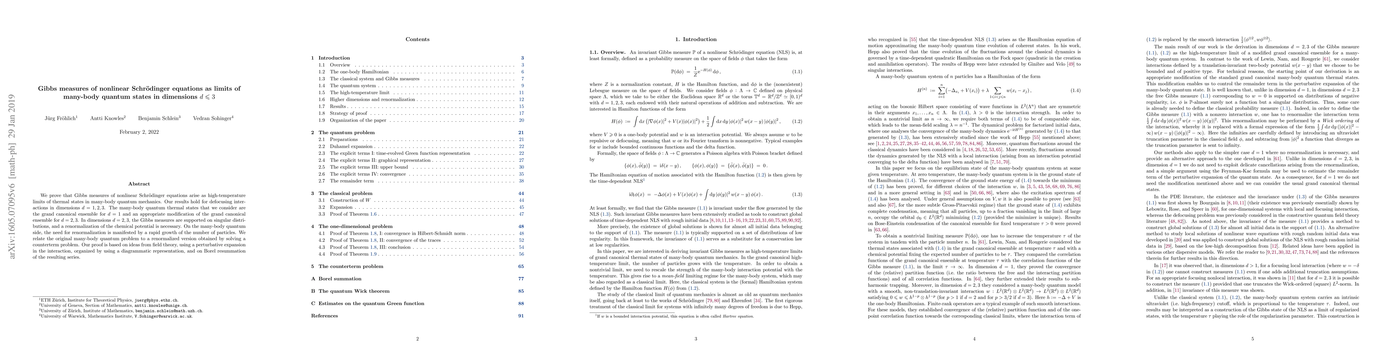 This paper demonstrates that Gibbs measures for nonlinear Schrödinger equations emerge as high-temperature limits of many-body quantum states in dimensions $d \leq 3$, requiring renormalization in $d = 2,3$ due to singular distributions and rapid particle growth. The proof employs field theory techniques, including perturbative expansion and Borel resummation.