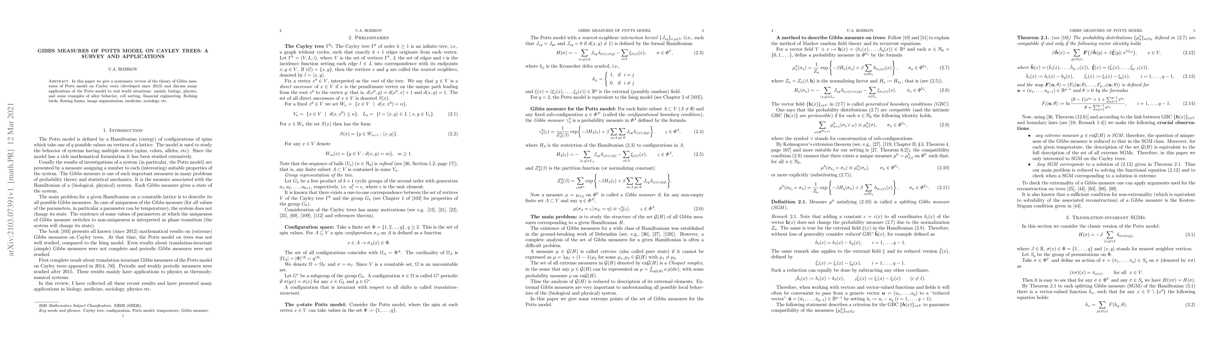 This paper systematically reviews the theory of Gibbs measures for the Potts model on Cayley trees, developed since 2013, and explores its applications across various fields including biology, physics, finance, and social sciences.
