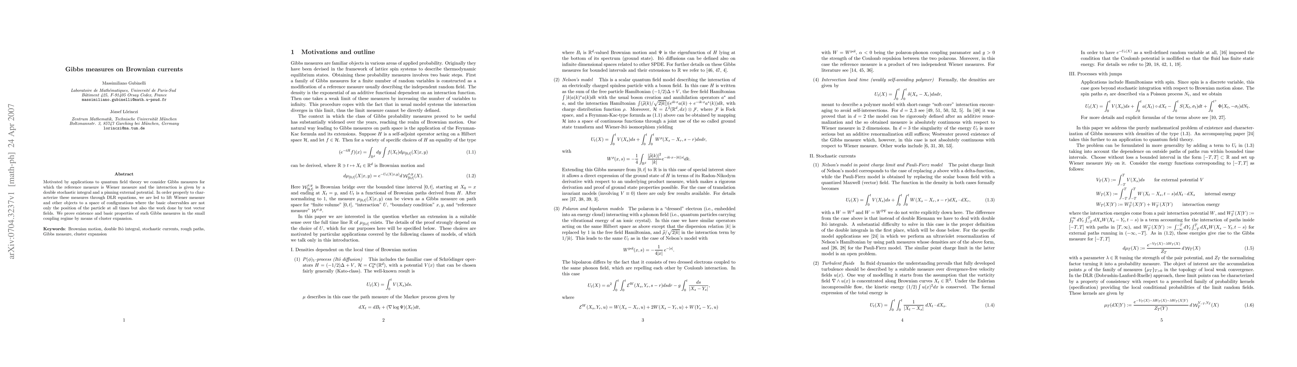This paper explores Gibbs measures for Brownian motion where the reference measure is Wiener measure, influenced by a double stochastic integral and an external pinning potential. The authors establish existence and properties of these measures in a small coupling regime using cluster expansion, extending the observables to include work done by test vector fields.