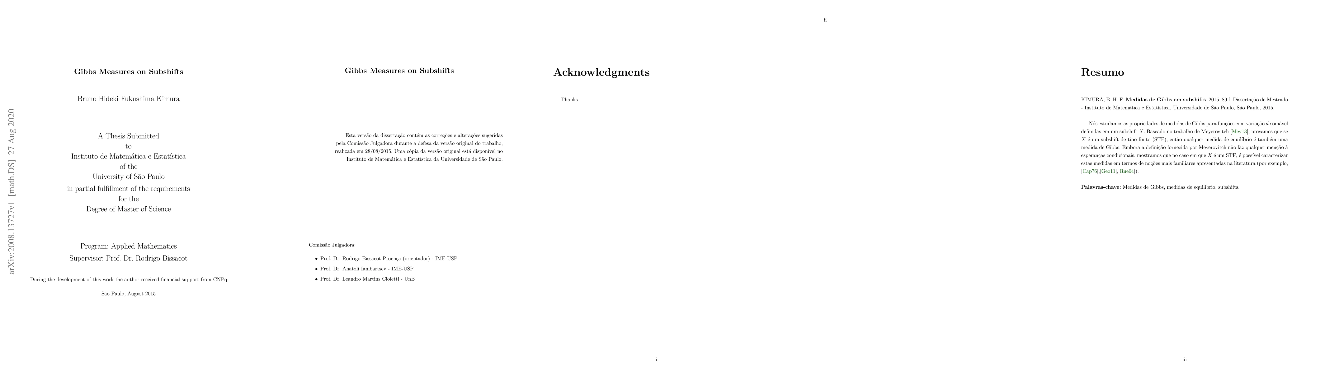 The notion of Gibbs Measure is used by many researchers of the communities of Mathematical Physics, Probability, Thermodynamic Formalism, Symbolic Dynamics, and others. A natural question is when these several different notions of Gibbs measure coincide. We study the properties of Gibbs measures for functions with $d-$summable variation defined on a subshift $X$. Based on Meyerovitch's work, we prove that if $X$ is a subshift of finite type (SFT), then any equilibrium measure is also a Gibbs measure. Although the definition provided by Meyerovitch does not make any mention to conditional expectations, we show that in the case where $X$ is a SFT, it is possible to characterize these measures in terms of more familiar notions presented in the literature of Mathematical Physics using DLR equations.
