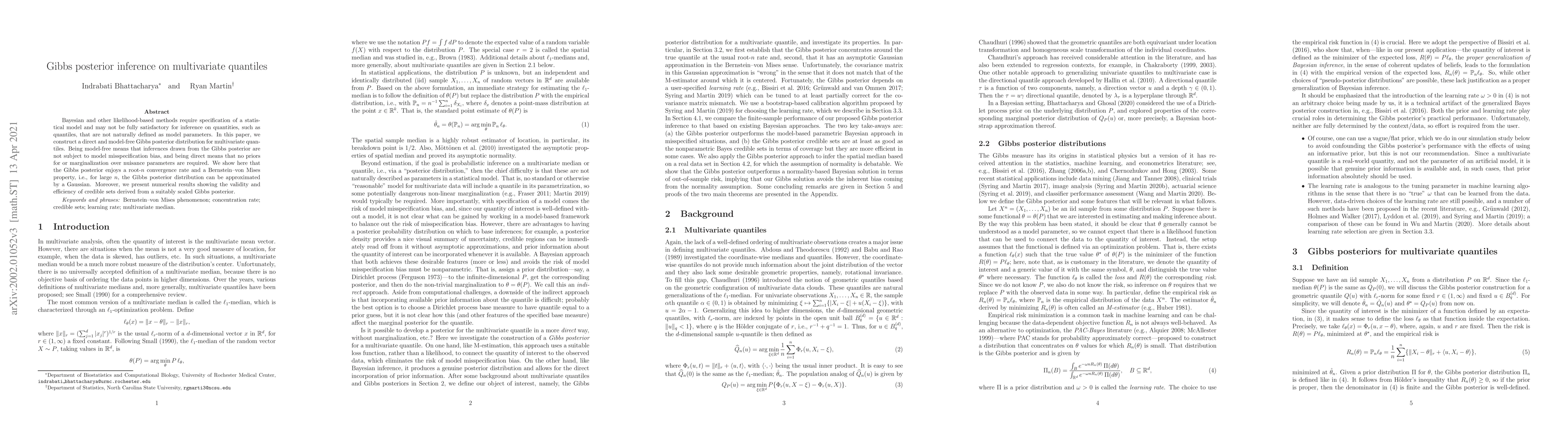 This paper develops a model-free Gibbs posterior distribution for multivariate quantiles, ensuring unbiased inference without model misspecification. It demonstrates the Gibbs posterior's root-$n$ convergence rate and Bernstein-von Mises property, and validates its efficiency through numerical results.