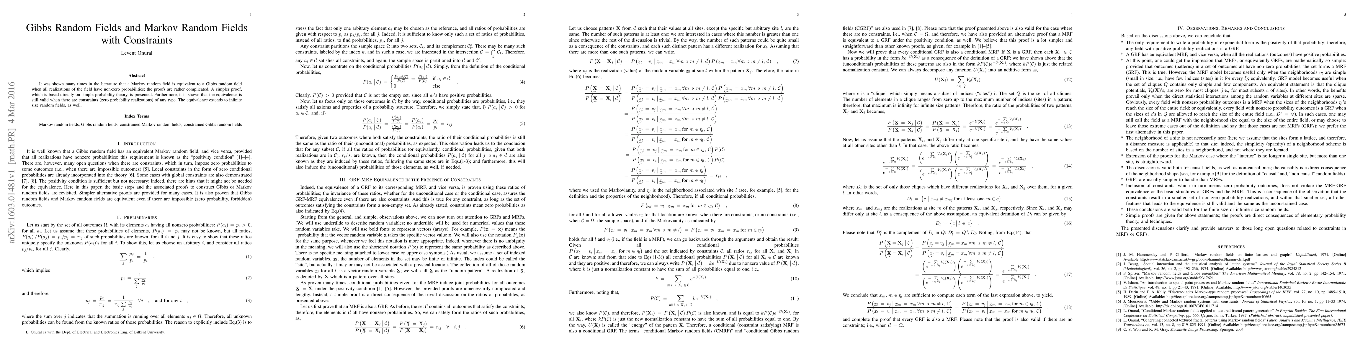 Researchers simplified a proof showing that Gibbs Random Fields (GRFs) are equivalent to Markov Random Fields with constraints, extending the equivalence to infinite size random fields.