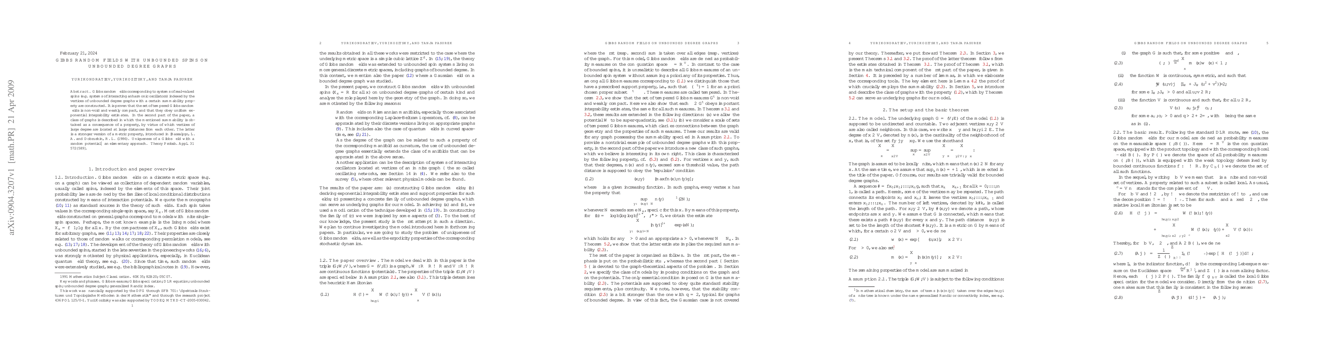 This paper constructs Gibbs random fields for systems of real-valued spins on unbounded degree graphs with a summability property, proving their non-void, weakly compact set and uniform exponential integrability. It also describes a class of graphs where the summability arises due to vertices of large degree being spatially distant.