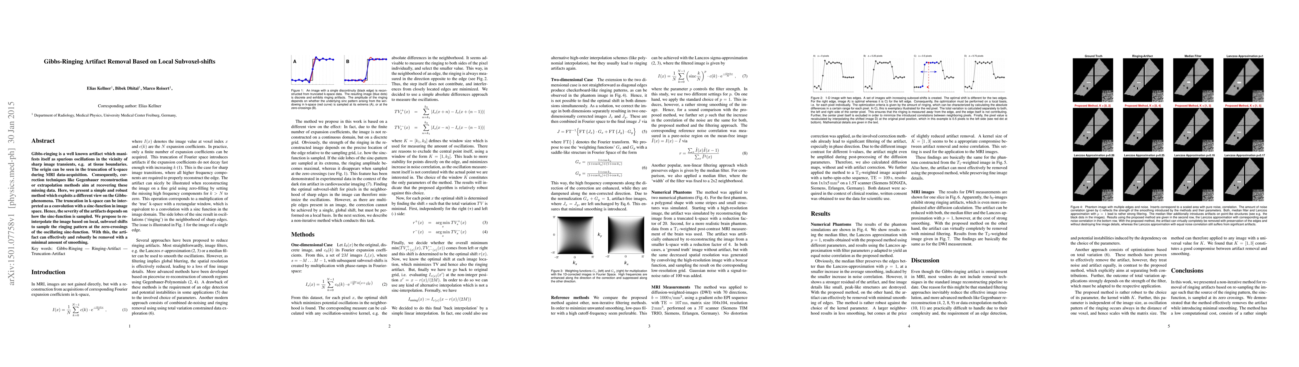 Gibbs-ringing is a well known artifact which manifests itself as spurious oscillations in the vicinity of sharp image transients, e.g. at tissue boundaries. The origin can be seen in the truncation of k-space during MRI data-acquisition. Consequently, correction techniques like Gegenbauer reconstruction or extrapolation methods aim at recovering these missing data. Here, we present a simple and robust method which exploits a different view on the Gibbs-phenomena. The truncation in k-space can be interpreted as a convolution with a sinc-function in image space. Hence, the severity of the artifacts depends on how the sinc-function is sampled. We propose to re-interpolate the image based on local, subvoxel shifts to sample the ringing pattern at the zero-crossings of the oscillating sinc-function. With this, the artifact can effectively and robustly be removed with a minimal amount of smoothing.