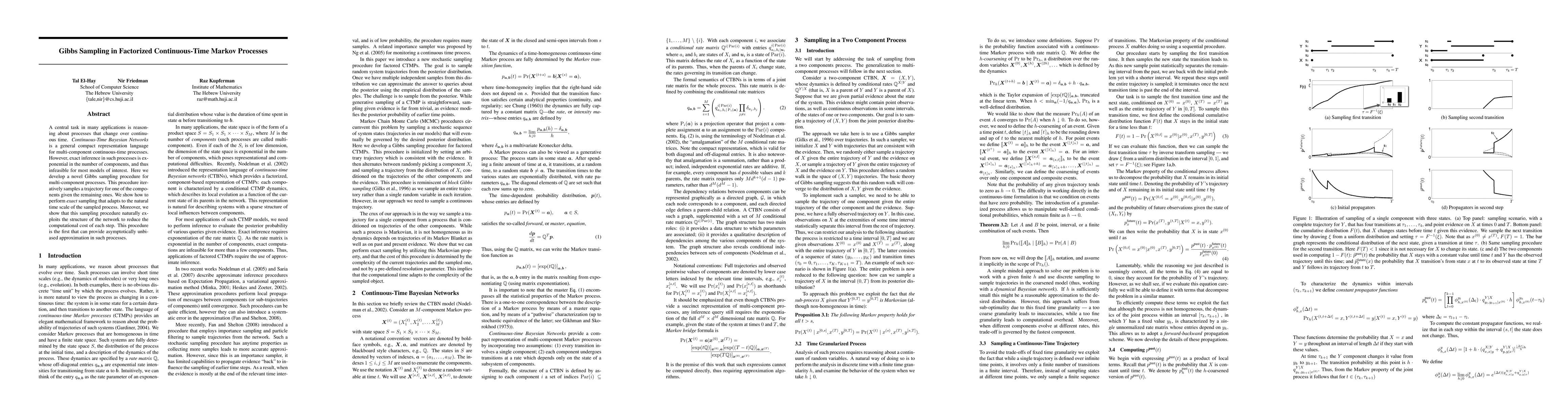 A central task in many applications is reasoning about processes that change over continuous time. Continuous-Time Bayesian Networks is a general compact representation language for multi-component continuous-time processes. However, exact inference in such processes is exponential in the number of components, and thus infeasible for most models of interest. Here we develop a novel Gibbs sampling procedure for multi-component processes. This procedure iteratively samples a trajectory for one of the components given the remaining ones. We show how to perform exact sampling that adapts to the natural time scale of the sampled process. Moreover, we show that this sampling procedure naturally exploits the structure of the network to reduce the computational cost of each step. This procedure is the first that can provide asymptotically unbiased approximation in such processes.