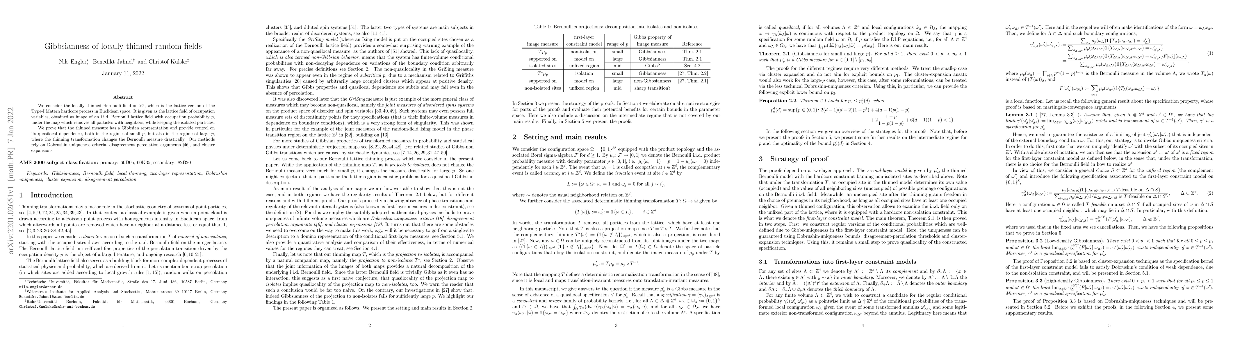 We consider the locally thinned Bernoulli field on $\mathbb Z^d$, which is the lattice version of the Type-I Mat\'ern hardcore process in Euclidean space. It is given as the lattice field of occupation variables, obtained as image of an i.i.d. Bernoulli lattice field with occupation probability $p$, under the map which removes all particles with neighbors, while keeping the isolated particles. We prove that the thinned measure has a Gibbsian representation and provide control on its quasilocal dependence, both in the regime of small $p$, but also in the regime of large $p$, where the thinning transformation changes the Bernoulli measure drastically. Our methods rely on Dobrushin uniqueness criteria, disagreement percolation arguments, and cluster expansions.
