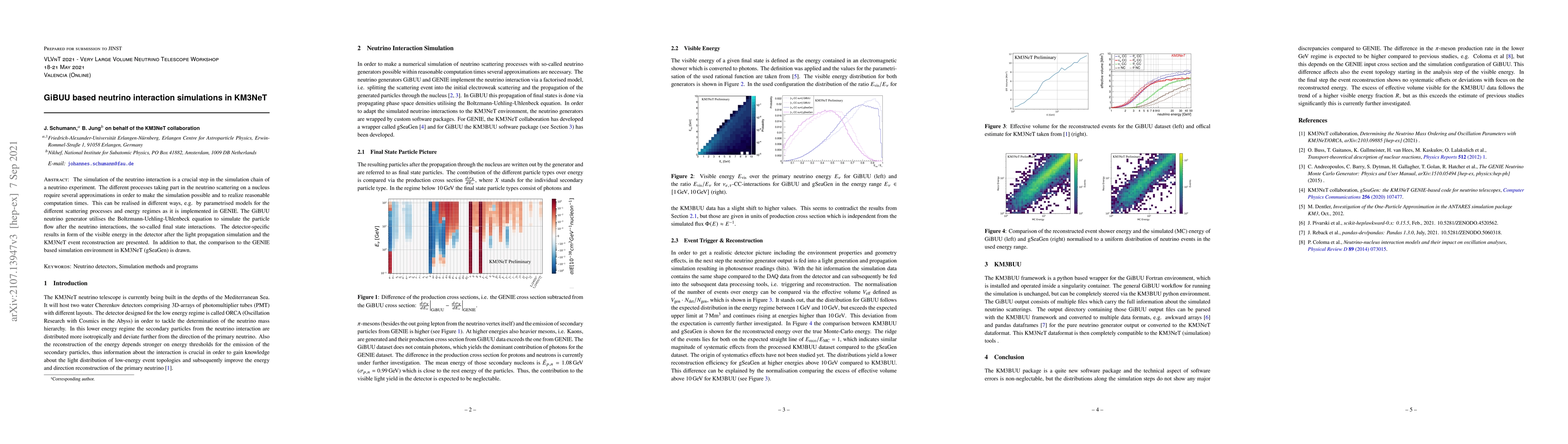Researchers used GiBUU to simulate neutrino interactions in KM3NeT, comparing results with GENIE-based simulation environment gSeaGen. The study aimed to improve accuracy of neutrino interaction simulations for future experiments.