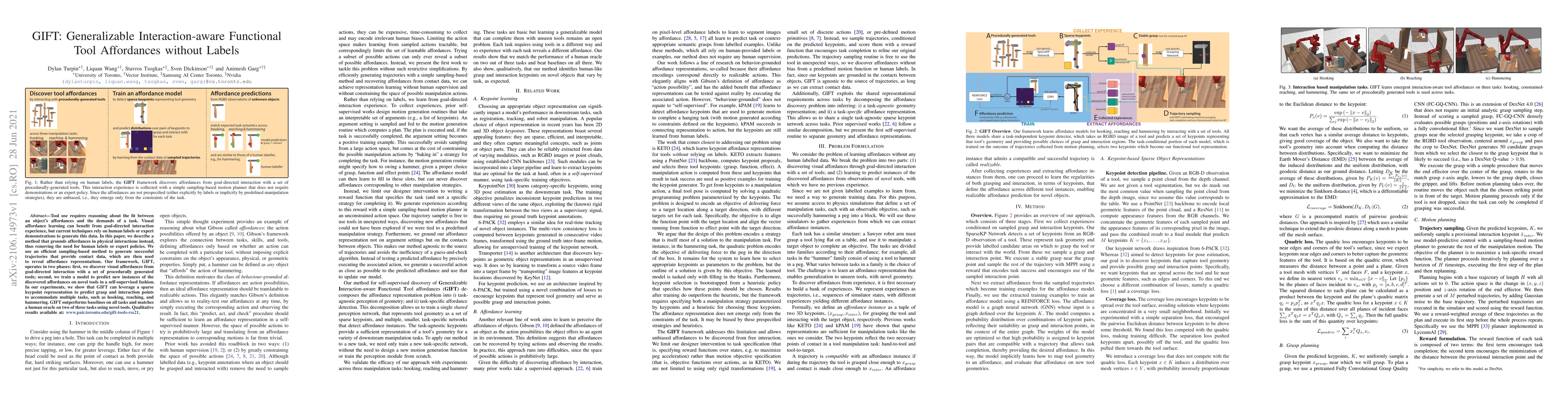 A new method called GIFT generates data on tool affordances without human labels, enabling robots to learn task-specific interactions. This approach improves upon previous techniques, allowing for efficient and self-supervised learning of grasp and interaction points.