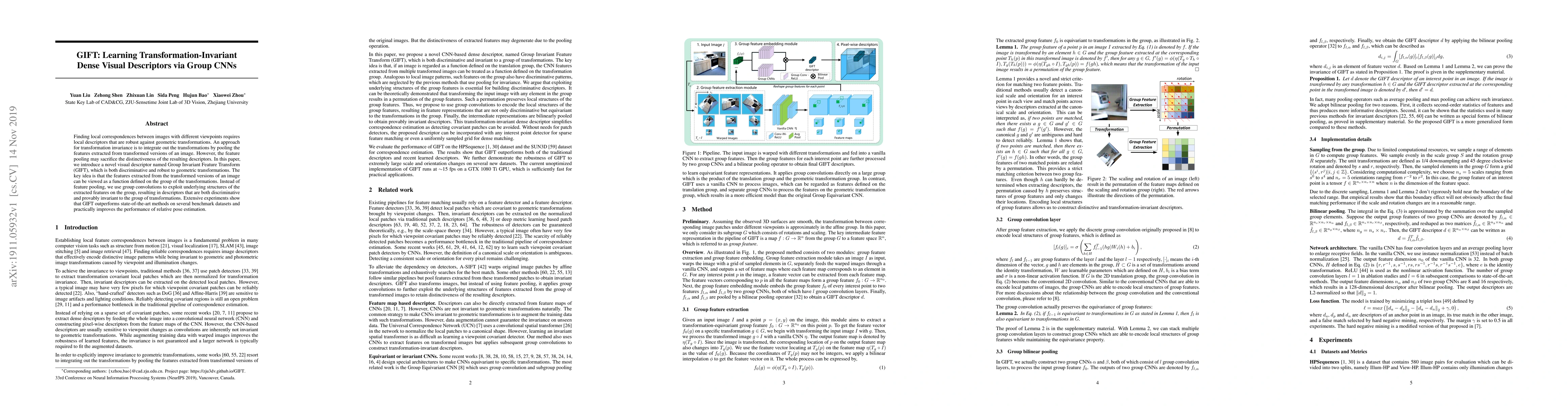 A new visual descriptor called GIFT is introduced, which combines discriminative and robustness to geometric transformations through group convolutions, outperforming state-of-the-art methods on several benchmark datasets.