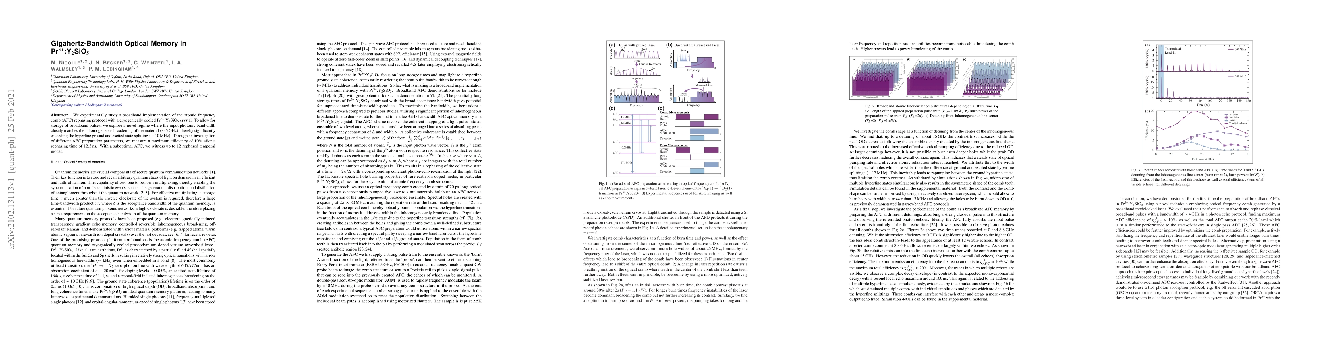 Researchers developed a new optical memory technology that can store broadband pulses with high efficiency, exceeding previous limits of $10 ext{ MHz}$ by using a material's inhomogeneous broadening of $ ext{GHz}$, achieving up to $10 ext{°} ext{%}$ efficiency.