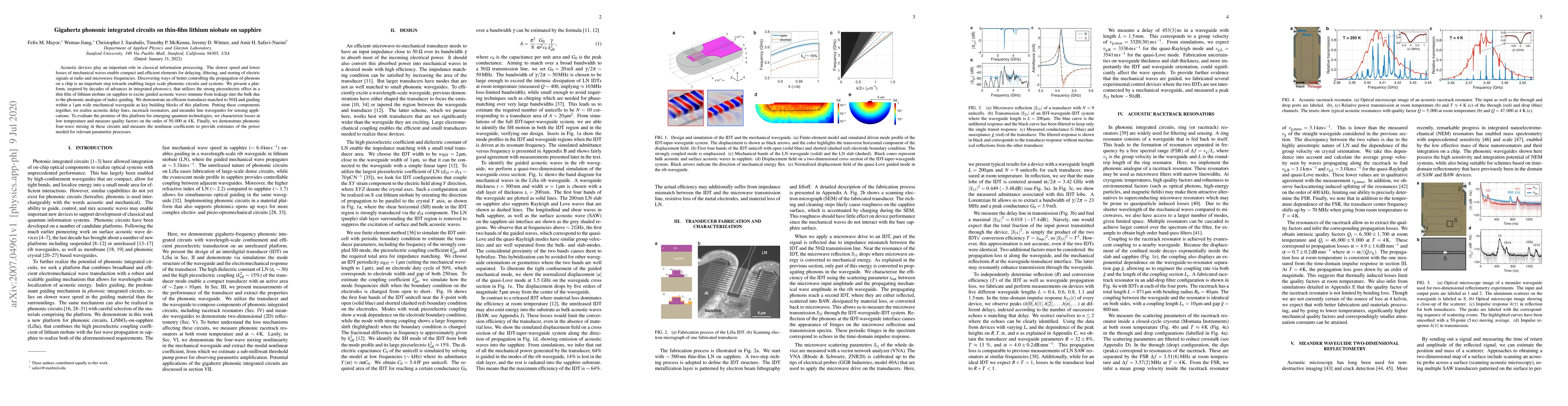 This research introduces a new platform for gigahertz phononic integrated circuits using thin-film lithium niobate on sapphire, leveraging its strong piezoelectric properties for efficient phonon control. The platform demonstrates low-loss phononic waveguides and acoustic delay lines, with quality factors of 50,000 at 4 kelvin, highlighting its potential for quantum technologies and nonlinear optical processes.