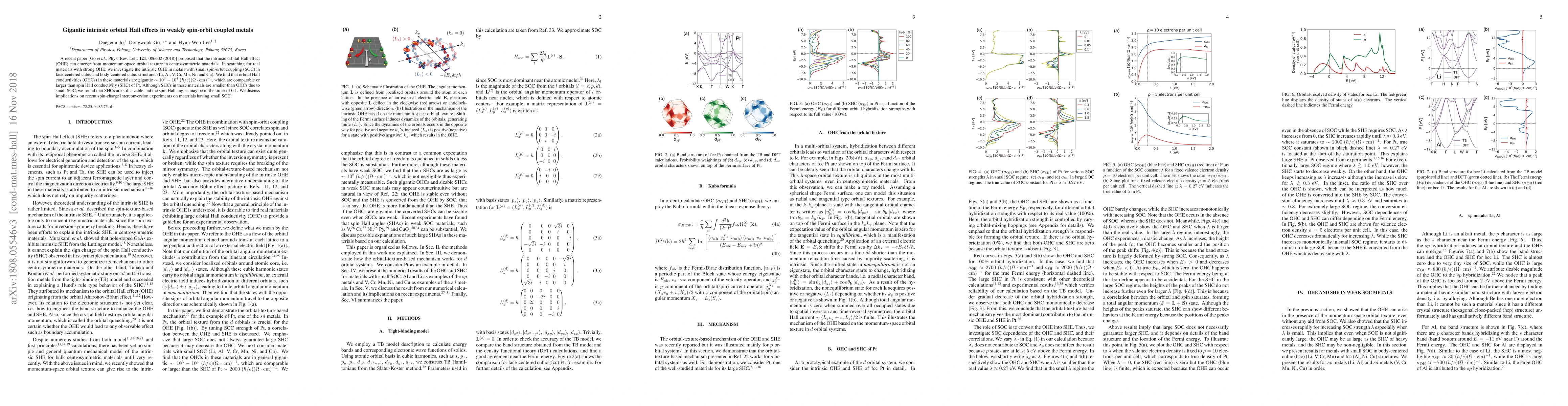 This paper investigates the intrinsic orbital Hall effect (OHE) in weakly spin-orbit coupled metals, finding that orbital Hall conductivities in materials like Li, Al, V, Cr, Mn, Ni, and Cu are exceptionally large, comparable to spin Hall conductivity in Pt. Despite small spin-orbit coupling, the spin Hall angles remain significant, impacting spin-charge interconversion experiments.