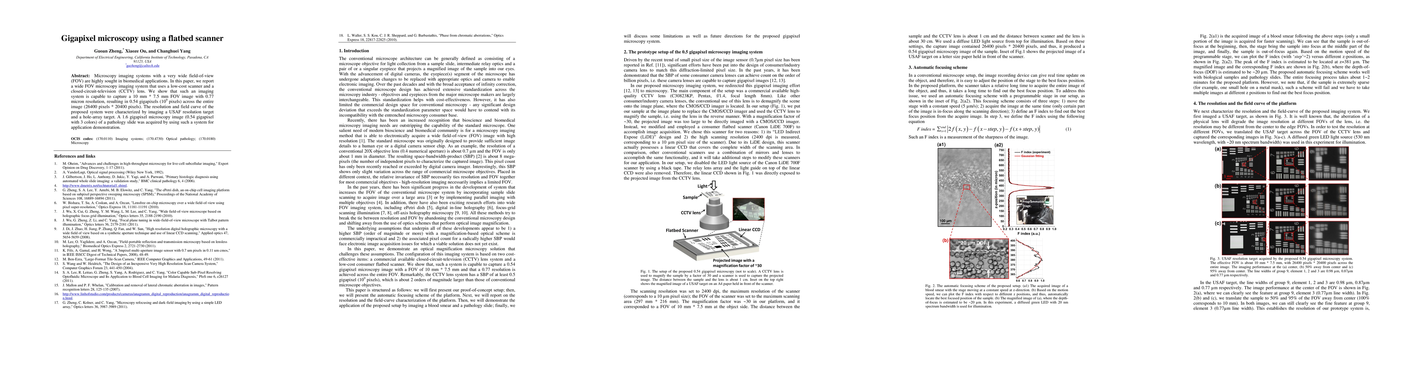 This paper presents a cost-effective wide field-of-view microscopy imaging system using a flatbed scanner and a CCTV lens, achieving a 10 mm * 7.5 mm FOV with 0.77 micron resolution, resulting in a 0.54 gigapixel image. The system's performance was validated using resolution targets and demonstrated with a 1.6 gigapixel pathology slide image.