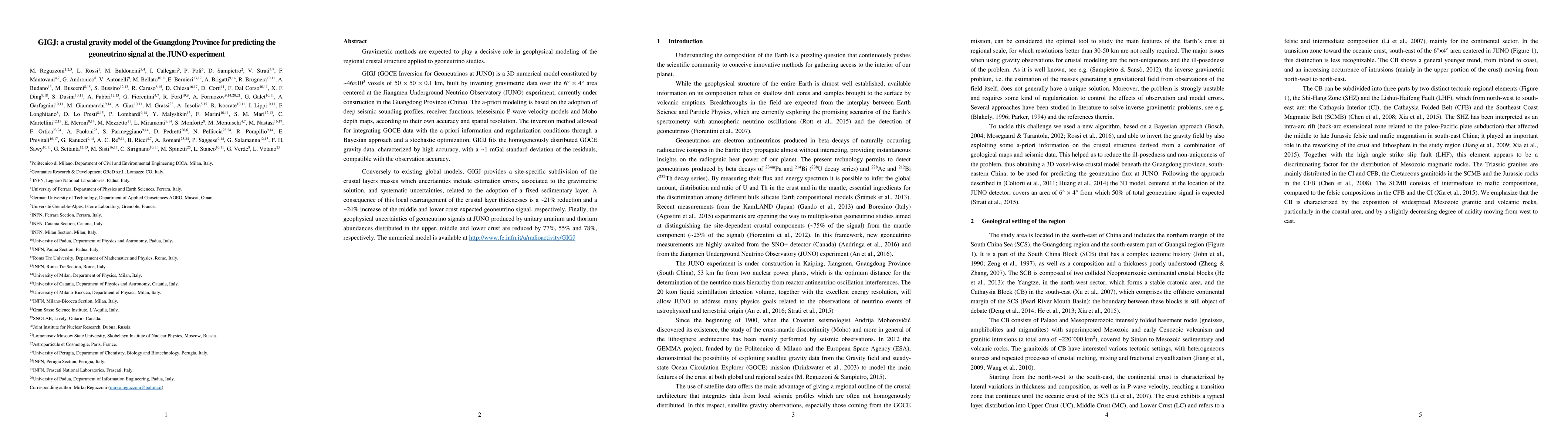 The GIGJ model provides a detailed 3D crustal gravity model for Guangdong Province, integrating GOCE data and a-priori geological information to predict geoneutrino signals at the JUNO experiment. It reduces uncertainties in geoneutrino signal predictions by up to 78% and offers a site-specific crustal layer mass distribution.