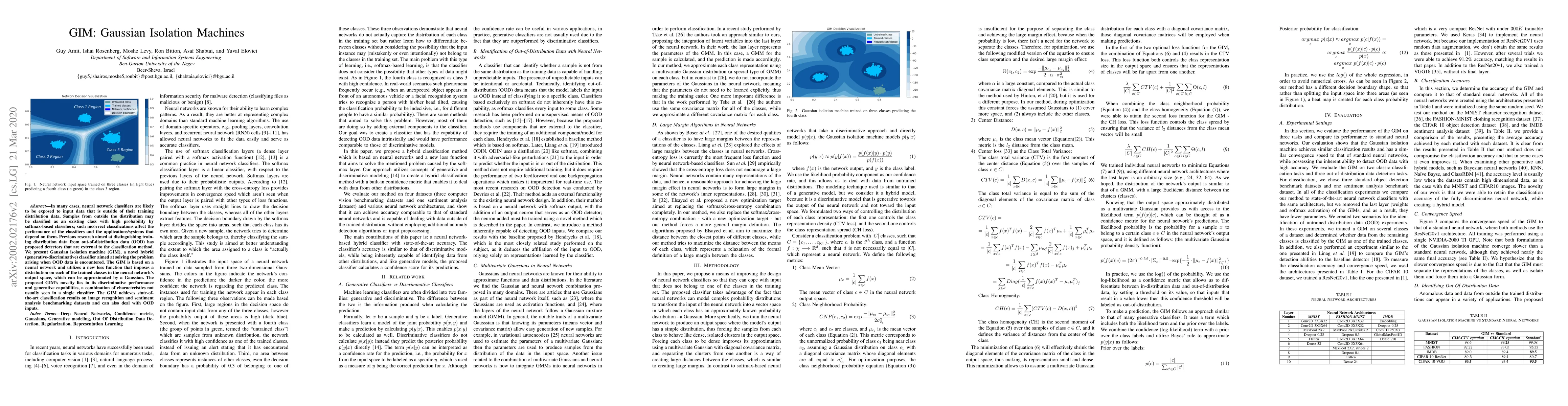 In many cases, neural network classifiers are likely to be exposed to input data that is outside of their training distribution data. Samples from outside the distribution may be classified as an existing class with high probability by softmax-based classifiers; such incorrect classifications affect the performance of the classifiers and the applications/systems that depend on them. Previous research aimed at distinguishing training distribution data from out-of-distribution data (OOD) has proposed detectors that are external to the classification method. We present Gaussian isolation machine (GIM), a novel hybrid (generative-discriminative) classifier aimed at solving the problem arising when OOD data is encountered. The GIM is based on a neural network and utilizes a new loss function that imposes a distribution on each of the trained classes in the neural network's output space, which can be approximated by a Gaussian. The proposed GIM's novelty lies in its discriminative performance and generative capabilities, a combination of characteristics not usually seen in a single classifier. The GIM achieves state-of-the-art classification results on image recognition and sentiment analysis benchmarking datasets and can also deal with OOD inputs.