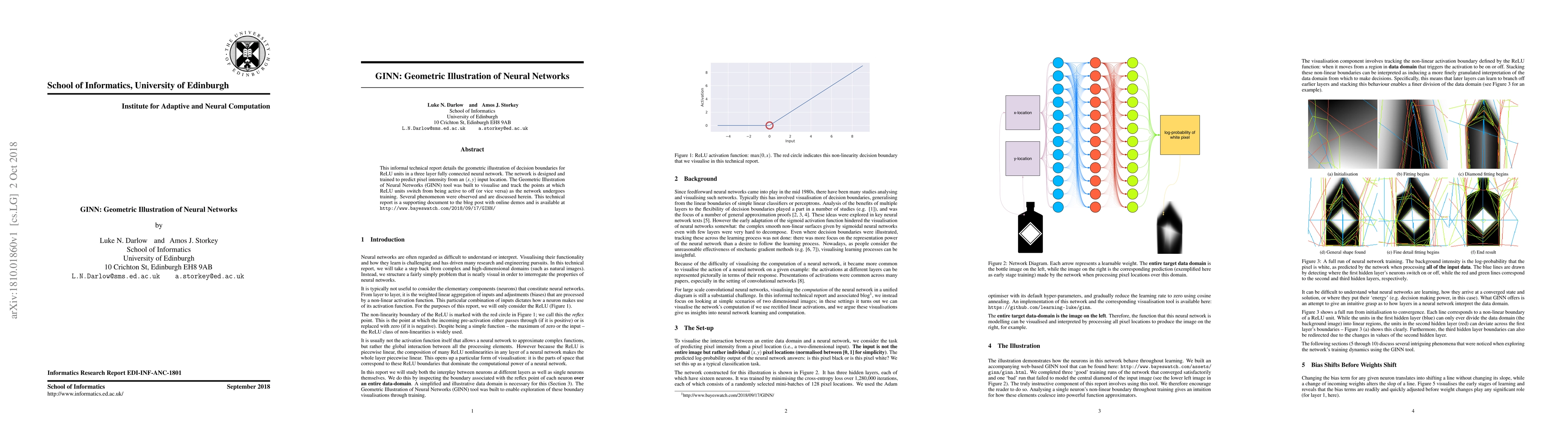 This informal technical report details the geometric illustration of decision boundaries for ReLU units in a three layer fully connected neural network. The network is designed and trained to predict pixel intensity from an (x, y) input location. The Geometric Illustration of Neural Networks (GINN) tool was built to visualise and track the points at which ReLU units switch from being active to off (or vice versa) as the network undergoes training. Several phenomenon were observed and are discussed herein. This technical report is a supporting document to the blog post with online demos and is available at http://www.bayeswatch.com/2018/09/17/GINN/.