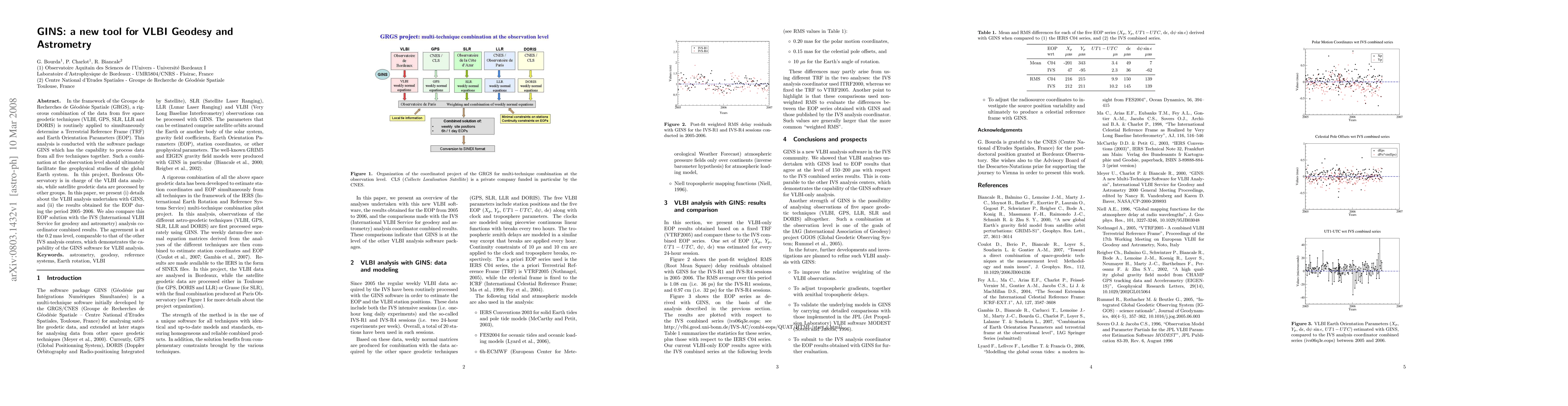 The GINS software package integrates data from five space geodetic techniques to determine a Terrestrial Reference Frame (TRF) and Earth Orientation Parameters (EOP). The analysis shows agreement with IVS results at the 0.2 mas level, demonstrating GINS's effectiveness for VLBI geodesy and astrometry.