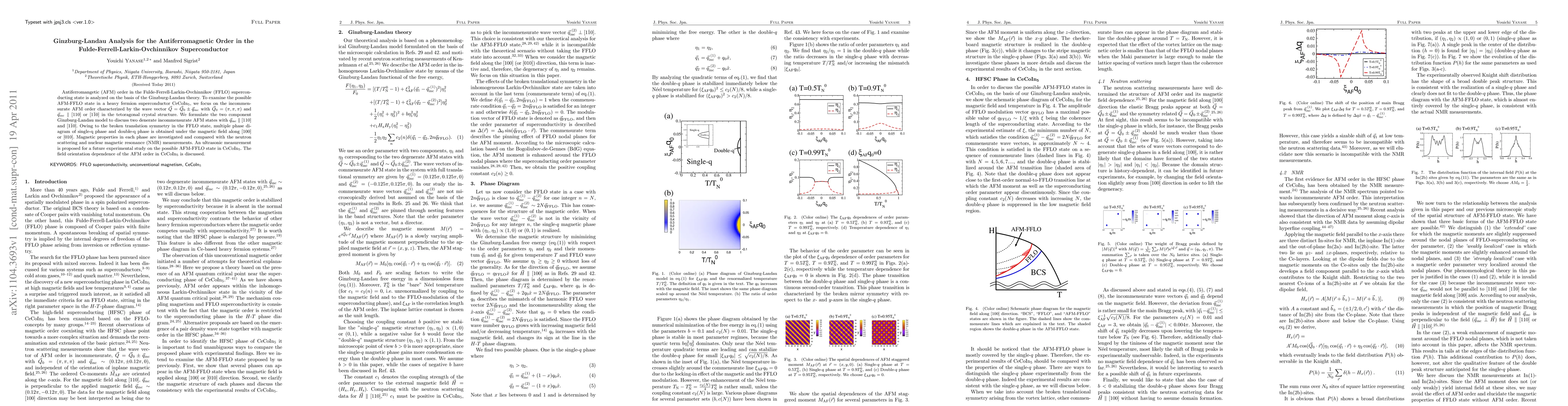 This paper uses Ginzburg-Landau theory to analyze incommensurate antiferromagnetic order in the FFLO superconductor, proposing a two-component model to explore two degenerate AFM states. It presents a multiple phase diagram under magnetic field and compares magnetic properties with experimental measurements, suggesting ultrasonic measurements for future studies.