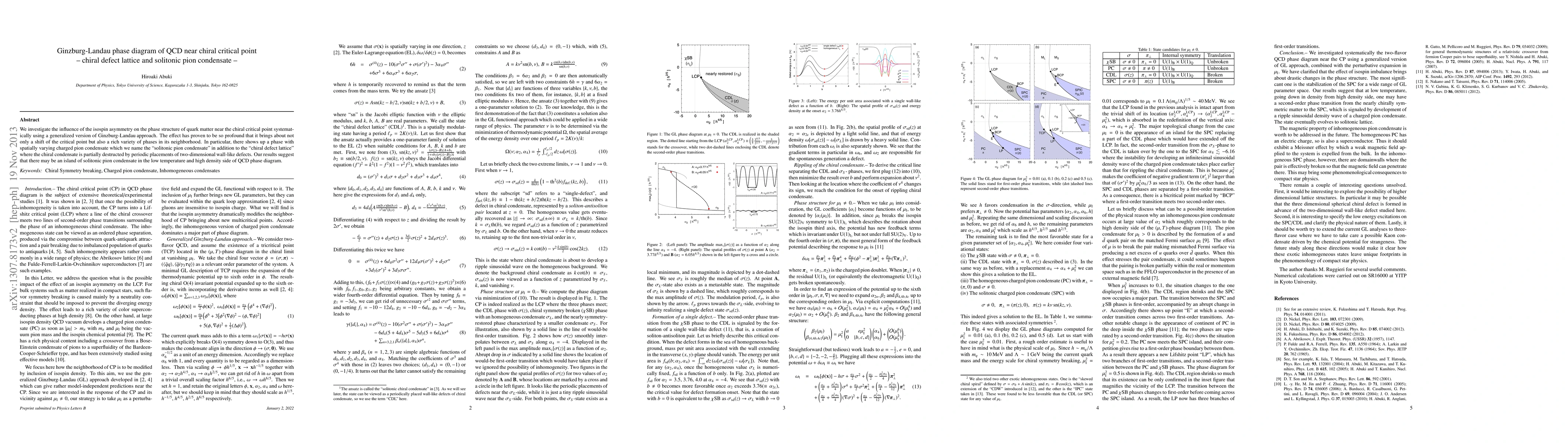 We investigate the influence of the isospin asymmetry on the phase structure of quark matter near the chiral critical point systematically using a generalized version of Ginzburg-Landau approach. The effect has proven to be so profound that it brings about not only a shift of the critical point but also a rich variety of phases in its neighborhood. In particular, there shows up a phase with spatially varying charged pion condensate which we name the "solitonic pion condensate" in addition to the "chiral defect lattice" where the chiral condensate is partially destructed by periodic placements of two-dimensional wall-like defects. Our results suggest that there may be an island of solitonic pion condensate in the low temperature and high density side of QCD phase diagram.