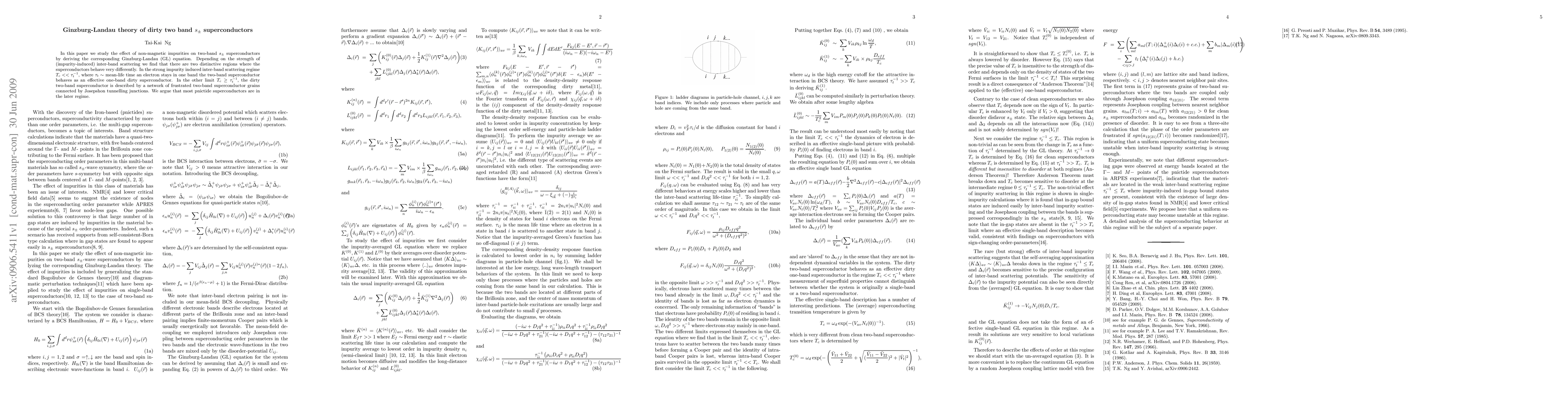 This paper explores the impact of non-magnetic impurities on two-band $s_{\pm}$ superconductors using Ginzburg-Landau theory, identifying two distinct regimes based on impurity-induced inter-band scattering. In the strong scattering regime, the superconductor behaves like an effective one-band system, while in the weaker scattering regime, it functions as a network of interconnected two-band grains.