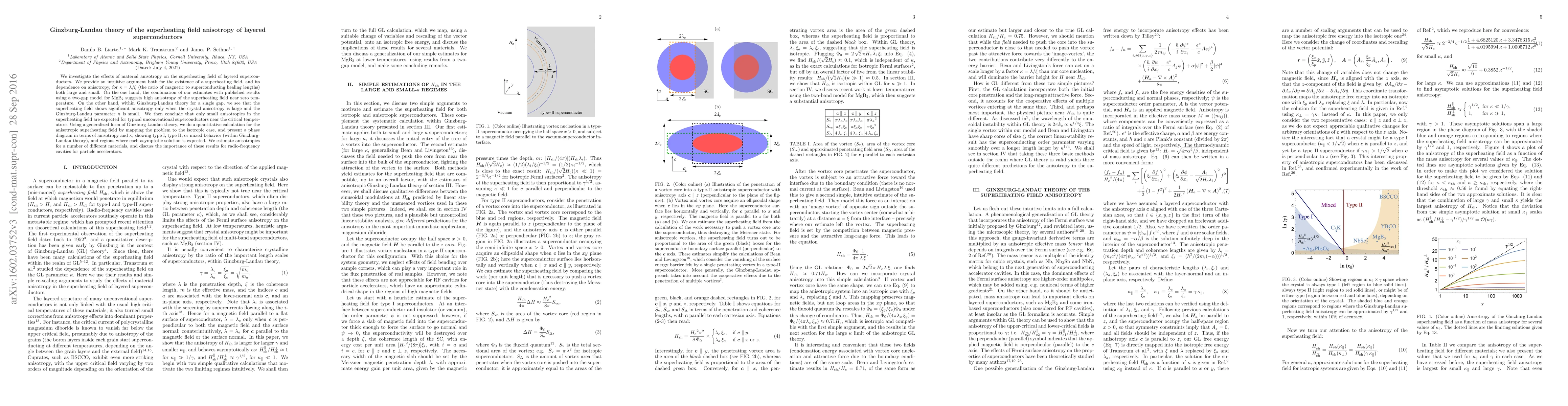This paper explores the anisotropy of the superheating field in layered superconductors using Ginzburg-Landau theory, finding significant anisotropy only when crystal anisotropy is large and the Ginzburg-Landau parameter is small. It concludes that typical unconventional superconductors exhibit small anisotropies near the critical temperature and presents a phase diagram for different material behaviors.