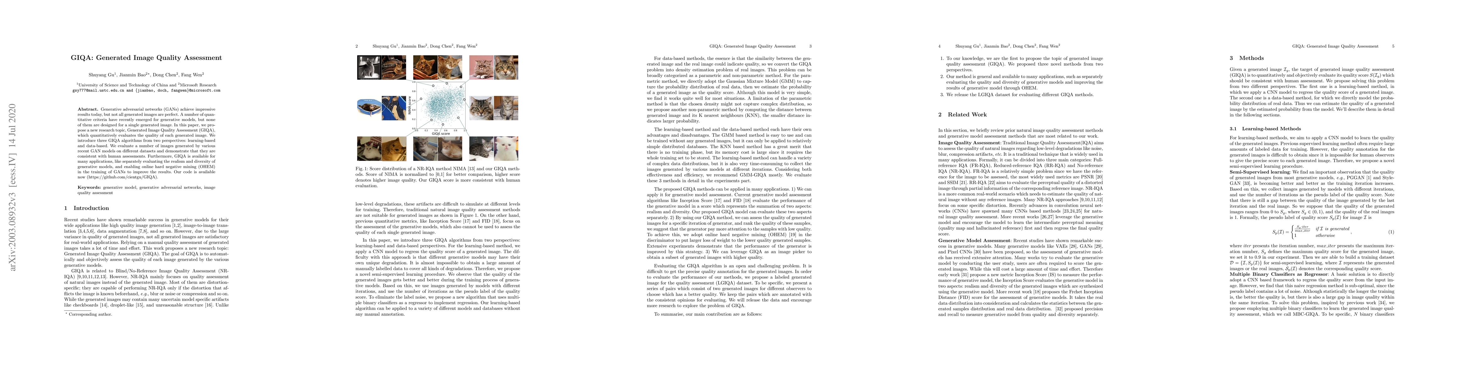 This paper introduces the concept of Generated Image Quality Assessment (GIQA) to quantitatively evaluate the quality of individual generated images from GANs. It proposes three GIQA algorithms, demonstrating their consistency with human assessments and potential applications in evaluating generative models' realism and diversity, as well as improving GAN training through online hard negative mining.