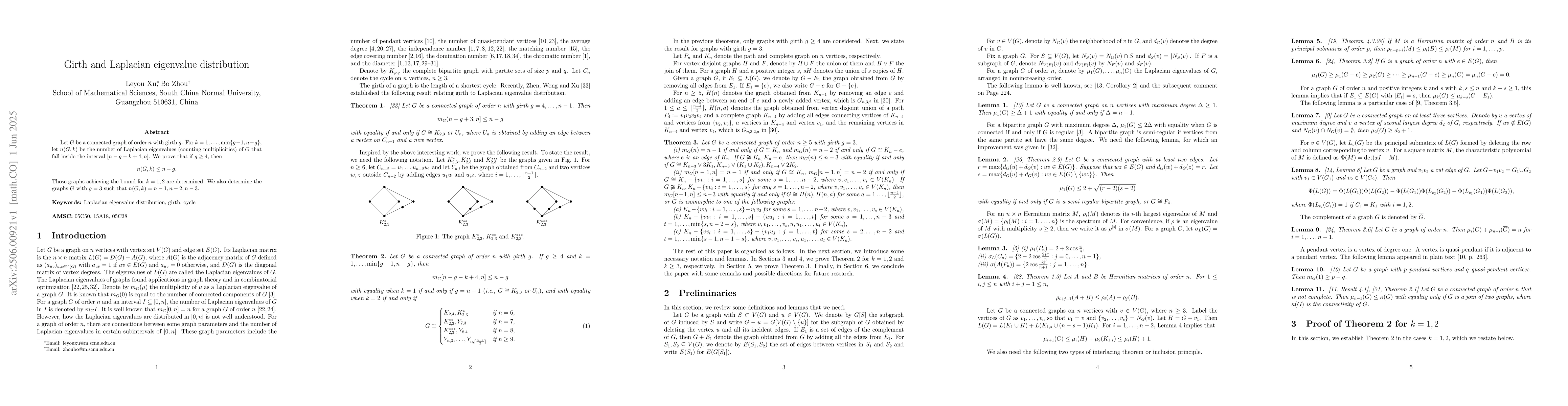 The paper presents a novel proof for the upper bound of n(G,k) and identifies specific graphs achieving this bound, advancing the understanding of Laplacian eigenvalue distribution in relation to graph girth.