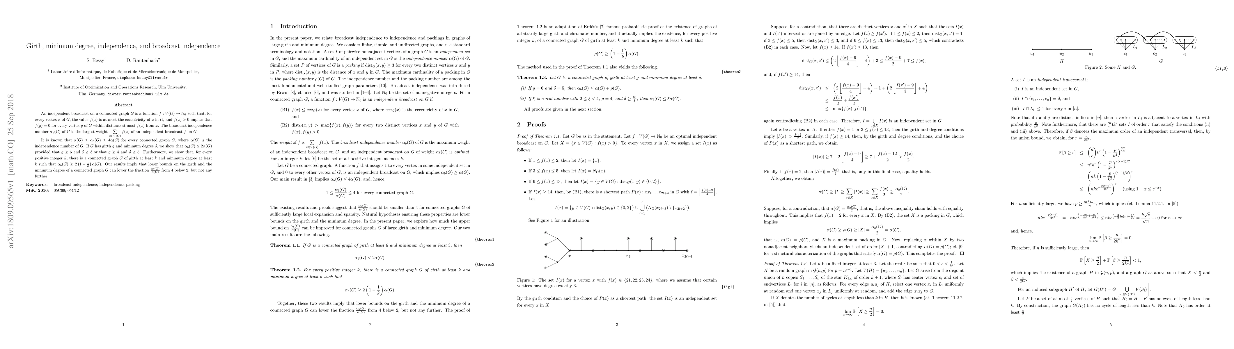 An independent broadcast on a connected graph $G$ is a function $f:V(G)\to \mathbb{N}_0$ such that, for every vertex $x$ of $G$, the value $f(x)$ is at most the eccentricity of $x$ in $G$, and $f(x)>0$ implies that $f(y)=0$ for every vertex $y$ of $G$ within distance at most $f(x)$ from $x$. The broadcast independence number $\alpha_b(G)$ of $G$ is the largest weight $\sum\limits_{x\in V(G)}f(x)$ of an independent broadcast $f$ on $G$. It is known that $\alpha(G)\leq \alpha_b(G)\leq 4\alpha(G)$ for every connected graph $G$, where $\alpha(G)$ is the independence number of $G$. If $G$ has girth $g$ and minimum degree $\delta$, we show that $\alpha_b(G)\leq 2\alpha(G)$ provided that $g\geq 6$ and $\delta\geq 3$ or that $g\geq 4$ and $\delta\geq 5$. Furthermore, we show that, for every positive integer $k$, there is a connected graph $G$ of girth at least $k$ and minimum degree at least $k$ such that $\alpha_b(G)\geq 2\left(1-\frac{1}{k}\right)\alpha(G)$. Our results imply that lower bounds on the girth and the minimum degree of a connected graph $G$ can lower the fraction $\frac{\alpha_b(G)}{\alpha(G)}$ from $4$ below $2$, but not any further.