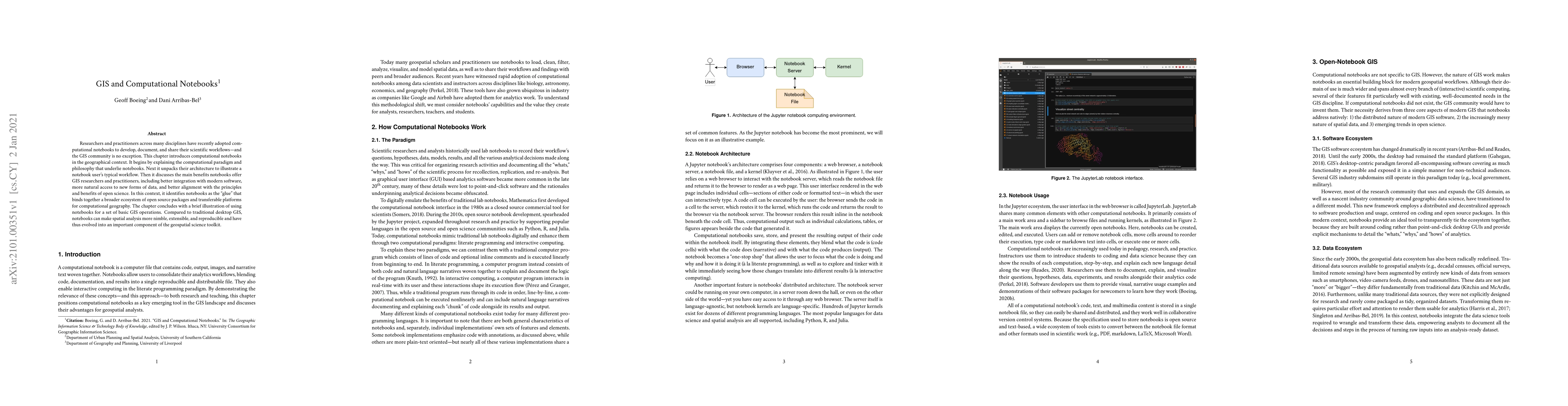 This paper explores the integration of computational notebooks in GIS, emphasizing their benefits such as enhanced software integration, improved data access, and alignment with open science principles. It concludes that notebooks facilitate more flexible, reproducible, and extensible spatial analysis compared to traditional GIS methods.
