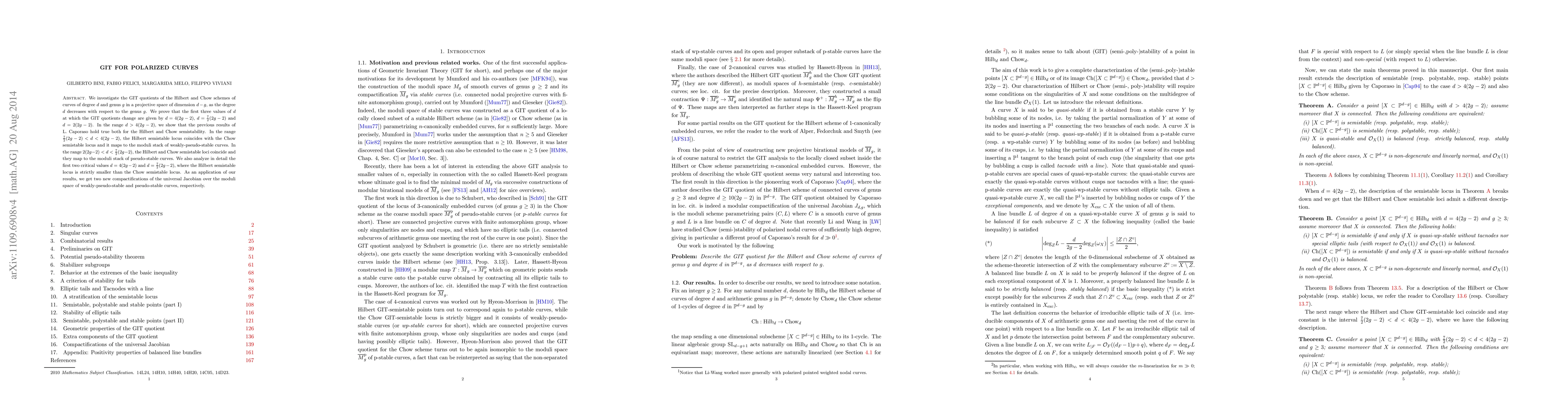 We investigate GIT quotients of polarized curves. More specifically, we study
