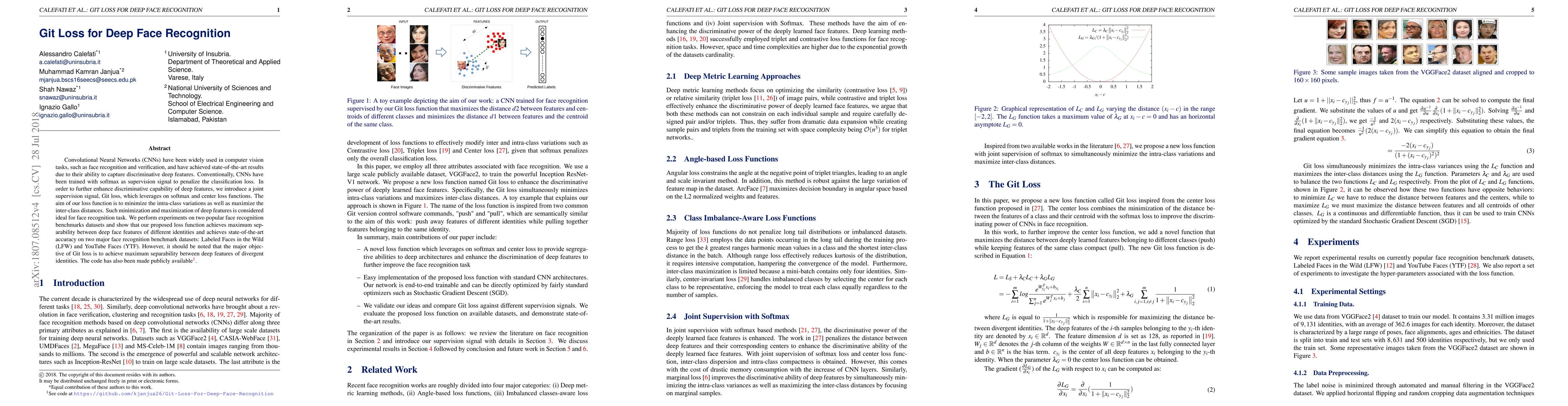 This paper proposes Git loss, a novel joint supervision signal combining softmax and center loss to enhance deep feature discriminative capability for face recognition. Experiments on LFW and YTF datasets demonstrate state-of-the-art accuracy by achieving maximum separability between deep face features of different identities.