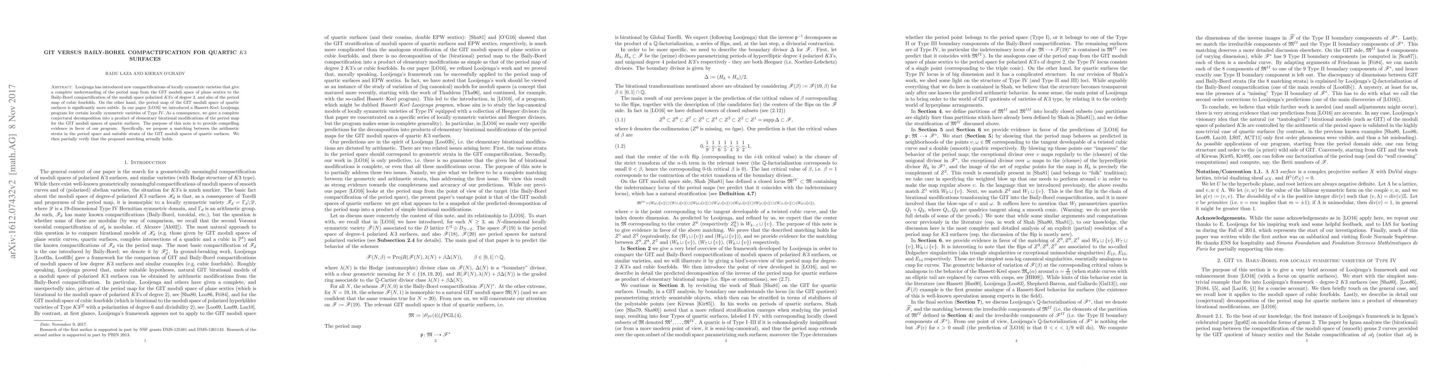 Looijenga has introduced new compactifications of locally symmetric varieties that give a complete understanding of the period map from the GIT moduli space of plane sextics to the Baily-Borel compactification of the moduli space polarized K3's of degree 2, and also of the period map of cubic fourfolds. On the other hand, the period map of the GIT moduli space of quartic surfaces is significantly more subtle. In our previous paper, we introduced a Hassett-Keel-Looijenga program for certain locally symmetric varieties of Type IV. As a consequence, we gave a complete conjectural decomposition into a product of elementary birational modifications of the period map for the GIT moduli spaces of quartic surfaces. The purpose of this note is to provide compelling evidence in favor of our program. Specifically, we propose a matching between the arithmetic strata in the period space and suitable strata of the GIT moduli spaces of quartic surfaces. We then partially verify that the proposed matching actually holds.