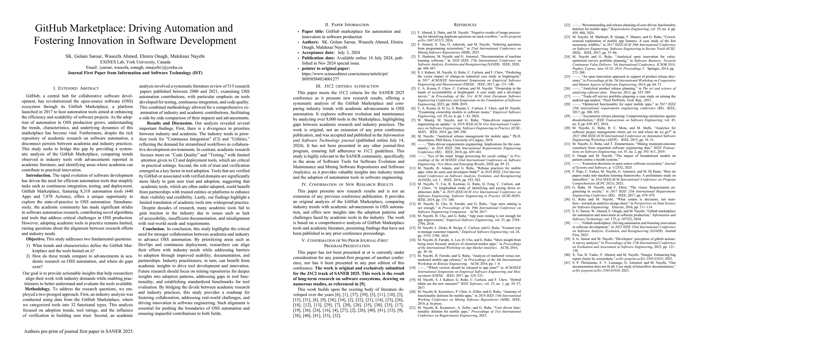 GitHub, a central hub for collaborative software development, has revolutionized the open-source software (OSS) ecosystem through its GitHub Marketplace, a platform launched in 2017 to host automation tools aimed at enhancing the efficiency and scalability of software projects. As the adoption of automation in OSS production grows, understanding the trends, characteristics, and underlying dynamics of this marketplace has become vital. Furthermore, despite the rich repository of academic research on software automation, a disconnect persists between academia and industry practices. This study seeks to bridge this gap by providing a systematic analysis of the GitHub Marketplace, comparing trends observed in industry tools with advancements reported in academic literature, and identifying areas where academia can contribute to practical innovation.