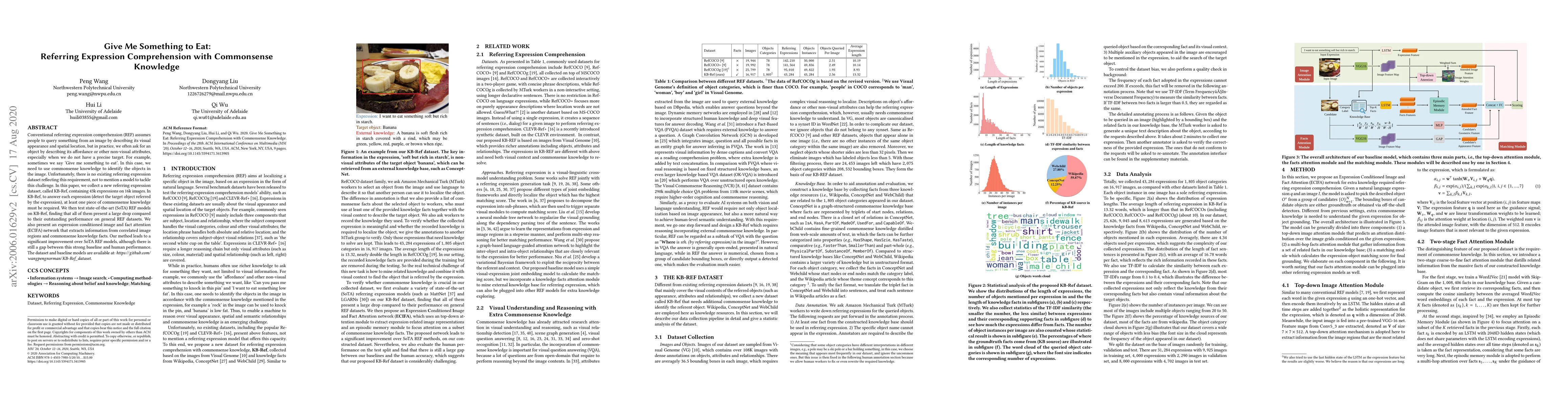 Conventional referring expression comprehension (REF) assumes people to query something from an image by describing its visual appearance and spatial location, but in practice, we often ask for an object by describing its affordance or other non-visual attributes, especially when we do not have a precise target. For example, sometimes we say 'Give me something to eat'. In this case, we need to use commonsense knowledge to identify the objects in the image. Unfortunately, these is no existing referring expression dataset reflecting this requirement, not to mention a model to tackle this challenge. In this paper, we collect a new referring expression dataset, called KB-Ref, containing 43k expressions on 16k images. In KB-Ref, to answer each expression (detect the target object referred by the expression), at least one piece of commonsense knowledge must be required. We then test state-of-the-art (SoTA) REF models on KB-Ref, finding that all of them present a large drop compared to their outstanding performance on general REF datasets. We also present an expression conditioned image and fact attention (ECIFA) network that extract information from correlated image regions and commonsense knowledge facts. Our method leads to a significant improvement over SoTA REF models, although there is still a gap between this strong baseline and human performance. The dataset and baseline models will be released.
