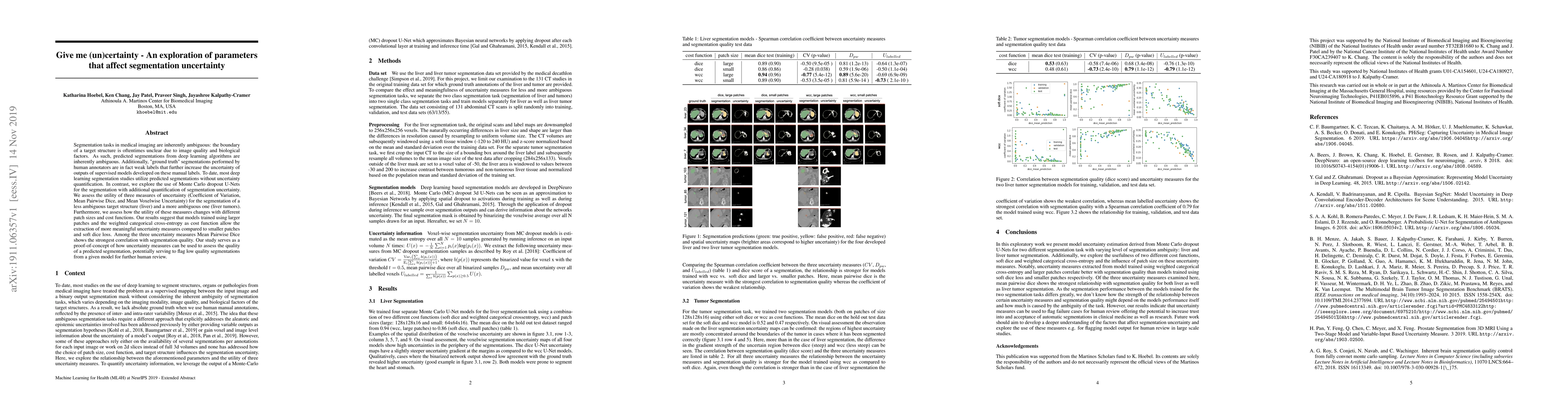 Segmentation tasks in medical imaging are inherently ambiguous: the boundary of a target structure is oftentimes unclear due to image quality and biological factors. As such, predicted segmentations from deep learning algorithms are inherently ambiguous. Additionally, "ground truth" segmentations performed by human annotators are in fact weak labels that further increase the uncertainty of outputs of supervised models developed on these manual labels. To date, most deep learning segmentation studies utilize predicted segmentations without uncertainty quantification. In contrast, we explore the use of Monte Carlo dropout U-Nets for the segmentation with additional quantification of segmentation uncertainty. We assess the utility of three measures of uncertainty (Coefficient of Variation, Mean Pairwise Dice, and Mean Voxelwise Uncertainty) for the segmentation of a less ambiguous target structure (liver) and a more ambiguous one (liver tumors). Furthermore, we assess how the utility of these measures changes with different patch sizes and cost functions. Our results suggest that models trained using larger patches and the weighted categorical cross-entropy as cost function allow the extraction of more meaningful uncertainty measures compared to smaller patches and soft dice loss. Among the three uncertainty measures Mean Pairwise Dice shows the strongest correlation with segmentation quality. Our study serves as a proof-of-concept of how uncertainty measures can be used to assess the quality of a predicted segmentation, potentially serving to flag low quality segmentations from a given model for further human review.
