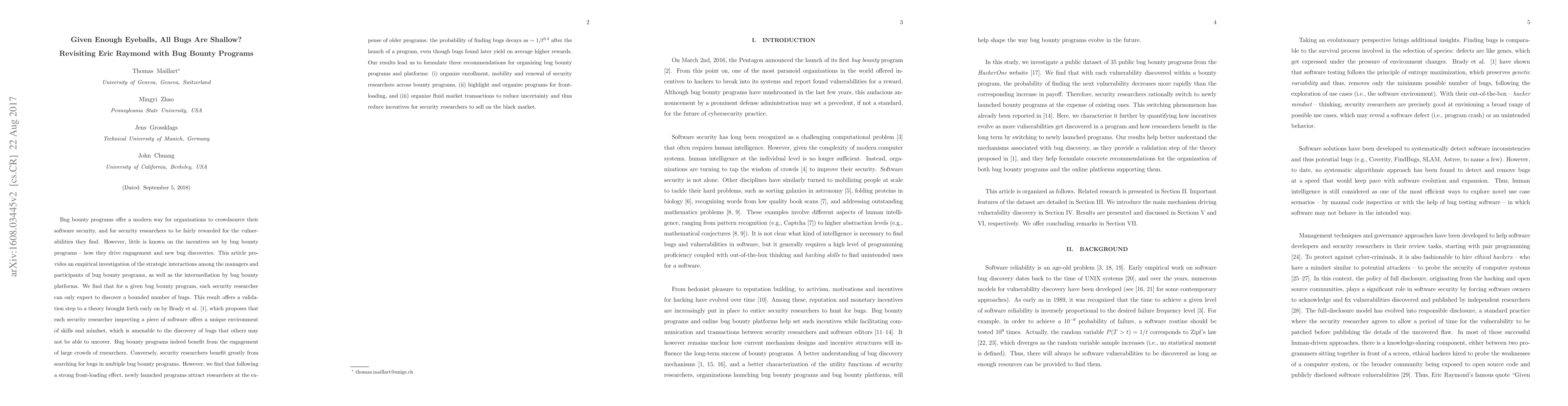 This paper examines the dynamics of bug bounty programs, highlighting how they incentivize security researchers to frequently switch to new programs due to diminishing returns on vulnerability discoveries. It also discusses the tension between program managers' desire for a large crowd and researchers' declining probability of finding new bugs, suggesting potential improvements in program design.