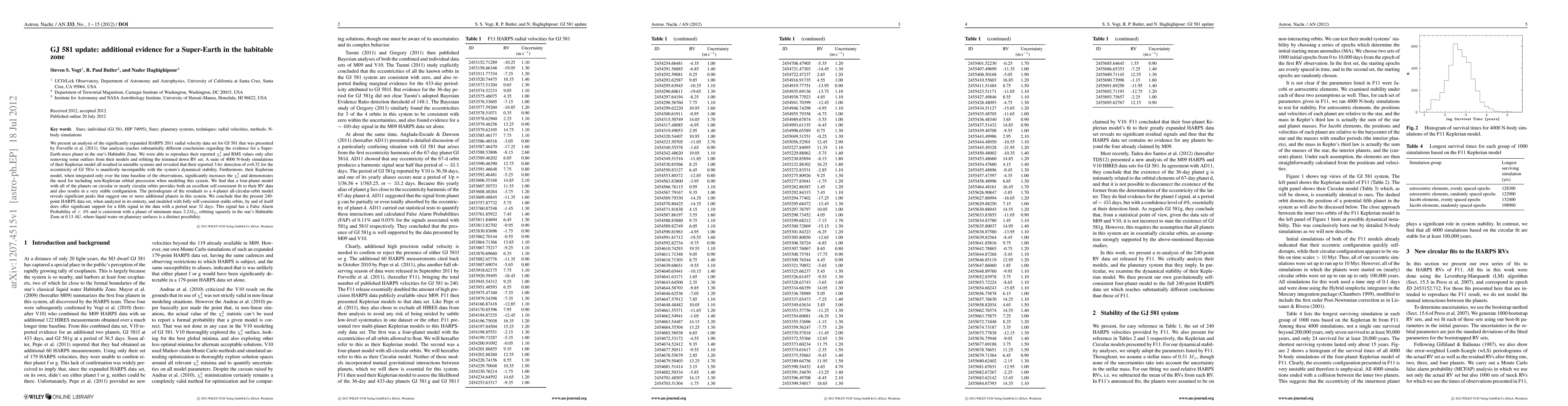 We present an analysis of the significantly expanded HARPS 2011 radial velocity data set for GJ 581 that was presented by Forveille et al. (2011). Our analysis reaches substantially different conclusions regarding the evidence for a Super-Earth-mass planet in the star's Habitable Zone. We were able to reproduce their reported \chi_{\nu}^2 and RMS values only after removing some outliers from their models and refitting the trimmed down RV set. A suite of 4000 N-body simulations of their Keplerian model all resulted in unstable systems and revealed that their reported 3.6\sigma detection of e=0.32 for the eccentricity of GJ 581e is manifestly incompatible with the system's dynamical stability. Furthermore, their Keplerian model, when integrated only over the time baseline of the observations, significantly increases the \chi_{\nu}^2 and demonstrates the need for including non-Keplerian orbital precession when modeling this system. We find that a four-planet model with all of the planets on circular or nearly circular orbits provides both an excellent self-consistent fit to their RV data and also results in a very stable configuration. The periodogram of the residuals to a 4-planet all-circular-orbit model reveals significant peaks that suggest one or more additional planets in this system. We conclude that the present 240-point HARPS data set, when analyzed in its entirety, and modeled with fully self-consistent stable orbits, by and of itself does offer significant support for a fifth signal in the data with a period near 32 days. This signal has a False Alarm Probability of <4% and is consistent with a planet of minimum mass of 2.2 Earth-masses, orbiting squarely in the star's Habitable Zone at 0.13 AU, where liquid water on planetary surfaces is a distinct possibility