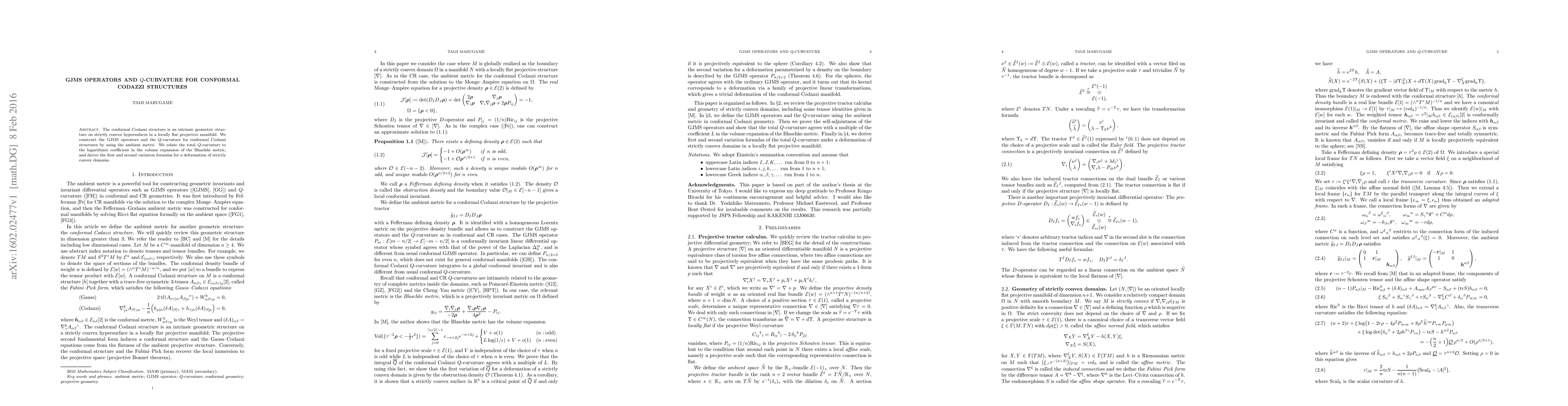 This paper constructs GJMS operators and Q-curvature for conformal Codazzi structures on strictly convex hypersurfaces in locally flat projective manifolds, relating total Q-curvature to the logarithmic coefficient in the volume expansion of the Blaschke metric, and deriving first and second variation formulas for domain deformations.