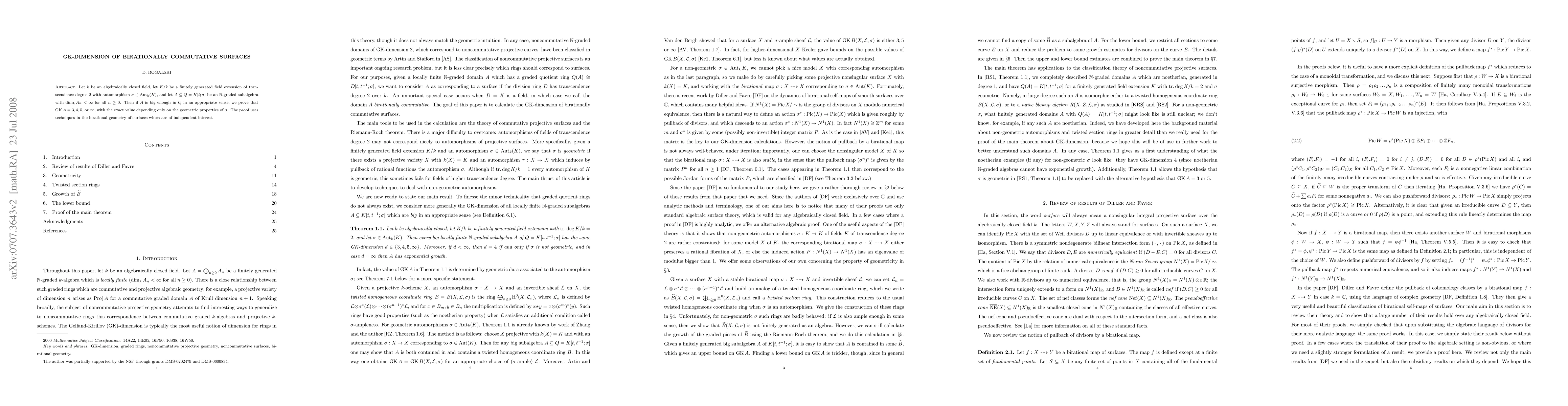 This research paper establishes a bound on the GK-dimension of birationally commutative surfaces, finding it to be 3, 4, 5 or infinite, depending on geometric properties of the automorphism sigma.