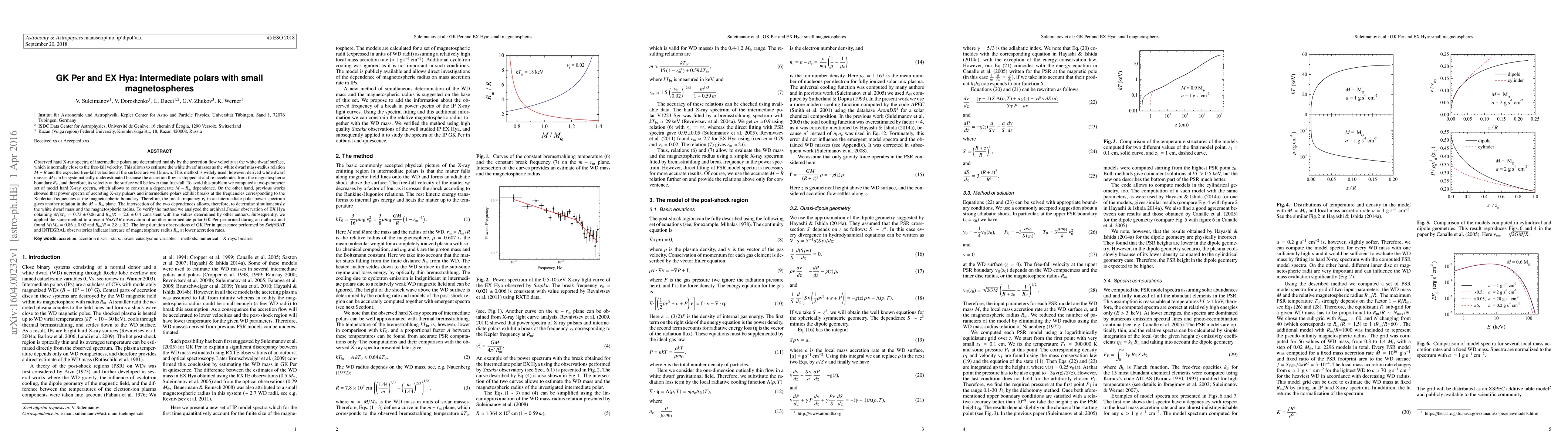This paper proposes a method to accurately determine white dwarf masses and magnetospheric radii in intermediate polars by analyzing hard X-ray spectra and power spectra. The method was verified on EX Hya and applied to GK Per, yielding consistent mass and radius estimates, and showing an increase in magnetospheric radius with lower accretion rates.