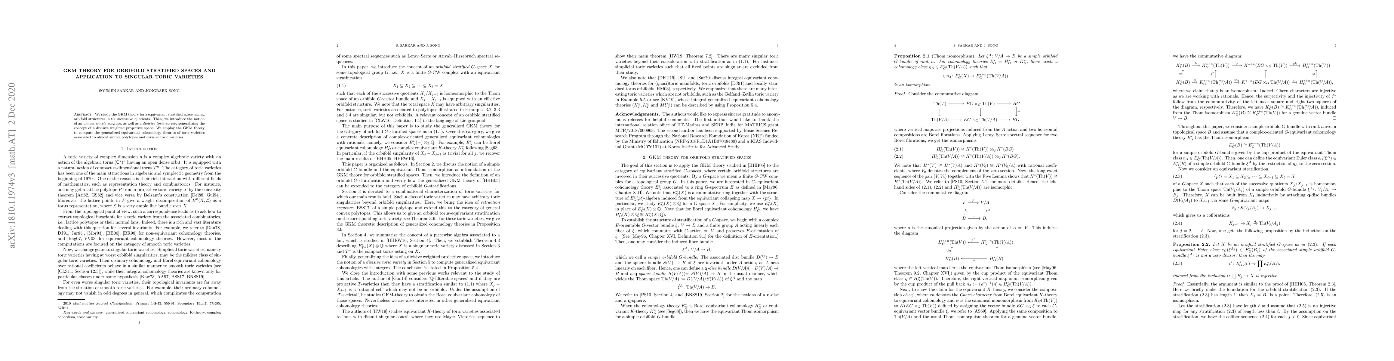 This research paper applies GKM theory to study orbifold stratified spaces and their application to singular toric varieties, introducing concepts of almost simple polytopes and divisive toric varieties to compute generalized equivariant cohomology theories.