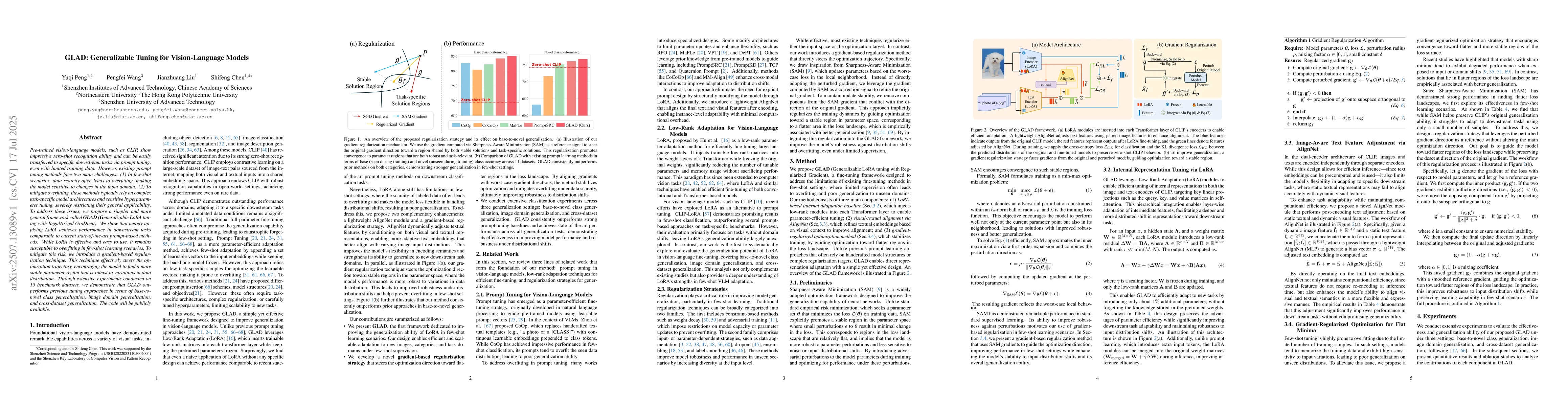 Pre-trained vision-language models, such as CLIP, show impressive zero-shot recognition ability and can be easily transferred to specific downstream tasks via prompt tuning, even with limited training data. However, existing prompt tuning methods face two main challenges: (1) In few-shot scenarios, data scarcity often leads to overfitting, making the model sensitive to changes in the input domain. (2) To mitigate overfitting, these methods typically rely on complex task-specific model architectures and sensitive hyperparameter tuning, severely restricting their general applicability. To address these issues, we propose a simpler and more general framework called GLAD (Generalizable LoRA tuning with RegulArized GraDient). We show that merely applying LoRA achieves performance in downstream tasks comparable to current state-of-the-art prompt-based methods. While LoRA is effective and easy to use, it remains susceptible to overfitting in few-shot learning scenarios. To mitigate this risk, we introduce a gradient-based regularization technique. This technique effectively steers the optimization trajectory, encouraging the model to find a more stable parameter region that is robust to variations in data distribution. Through extensive experiments conducted on 15 benchmark datasets, we demonstrate that GLAD outperforms previous tuning approaches in terms of base-to-novel class generalization, image domain generalization, and cross-dataset generalization. The code will be publicly available.