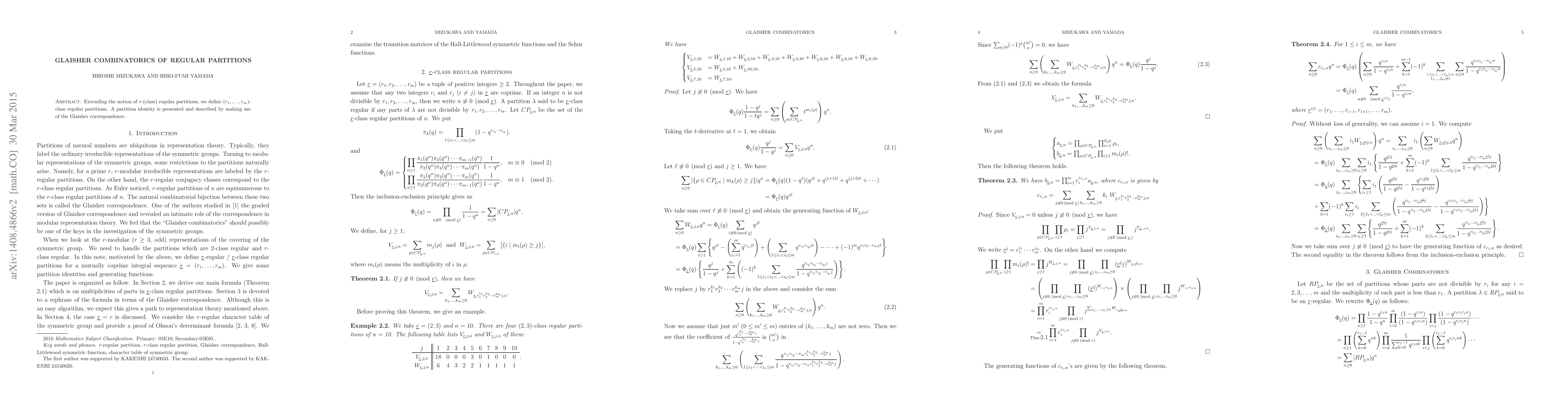 Extending the notion of $r$-(class) regular partitions, we define $(r_{1},...,r_{m})$-class regular partitions. A partition identity is presented and described by making use of the Glaisher correspondence.