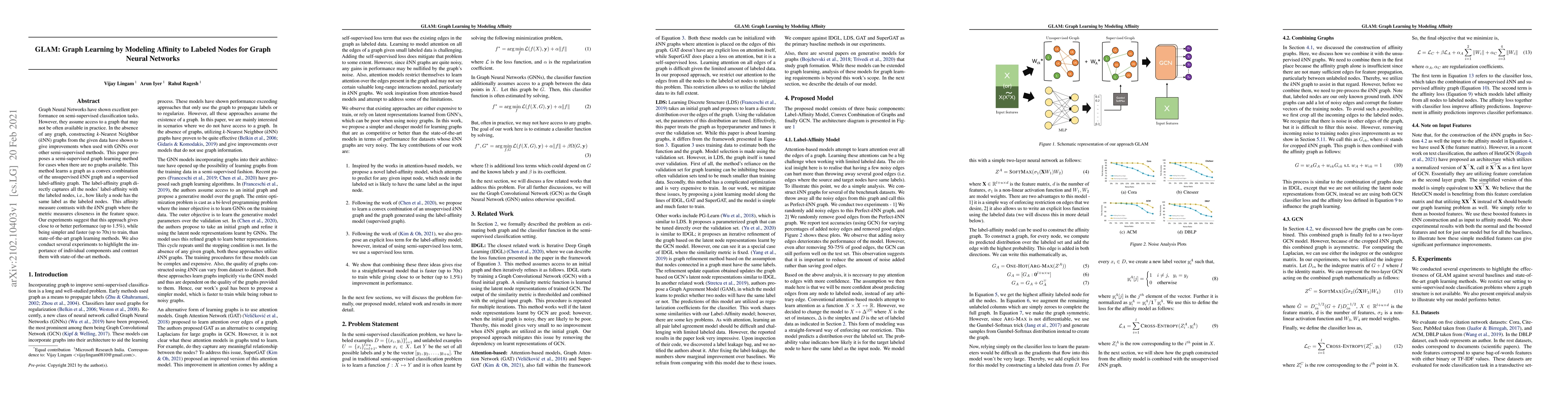 GLAM distinguishes itself by focusing on modeling affinity to labeled nodes, which contrasts with existing methods that primarily rely on proximity in feature space. Its simplicity and efficiency in training set it apart from other graph learning methods.