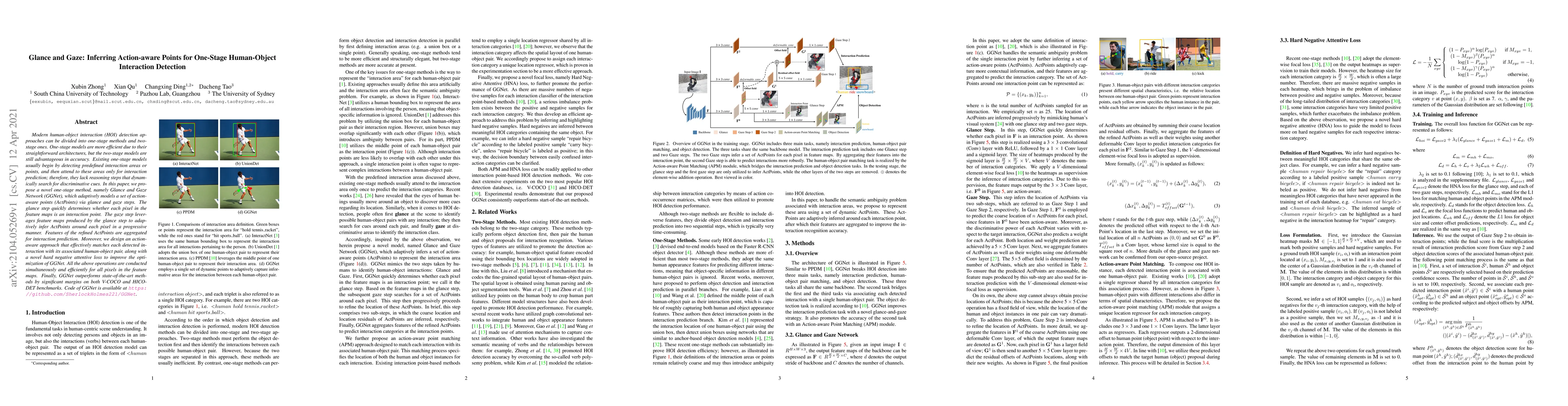 A new AI model called Glance and Gaze Network (GGNet) can accurately detect human-object interactions with one-stage processing, outperforming existing methods on two benchmarks.