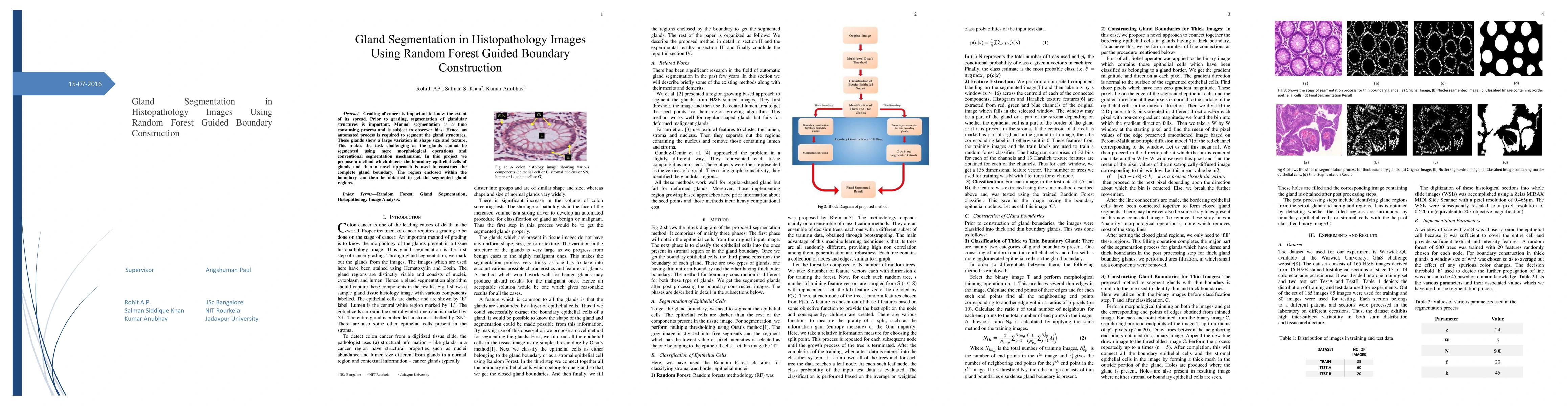 This paper proposes an automated method for segmenting glandular structures in histopathology images using Random Forest guided boundary construction, addressing the challenges posed by the variability in gland shapes and sizes to improve cancer grading accuracy.