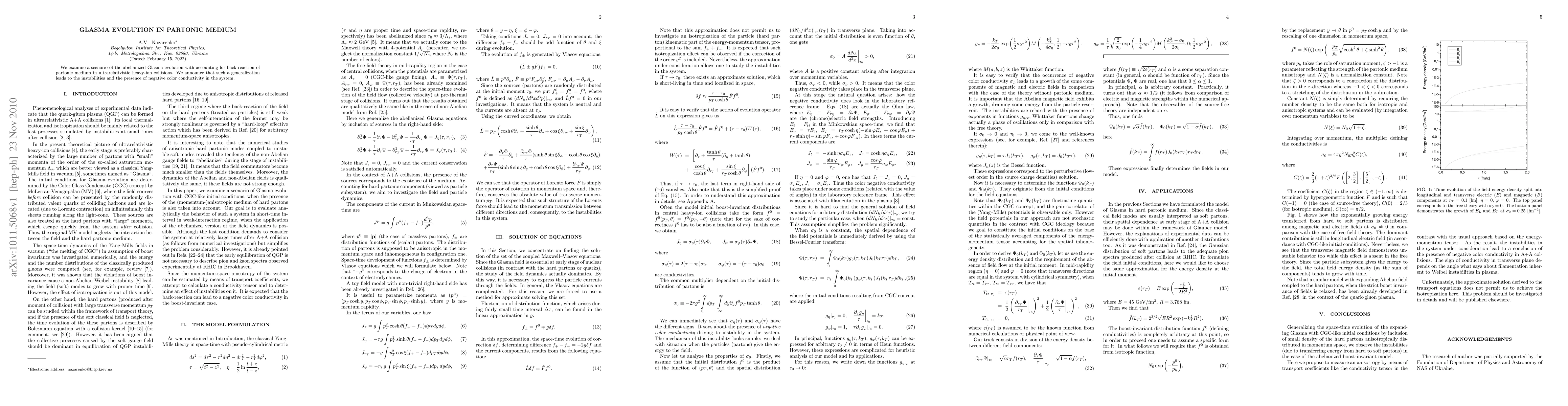 We examine a scenario of the abelianized Glasma evolution with accounting for back-reaction of partonic medium in ultrarelativistic heavy-ion collisions. We announce that such a generalization leads to the instabilities and the presence of negative color conductivity in the system.