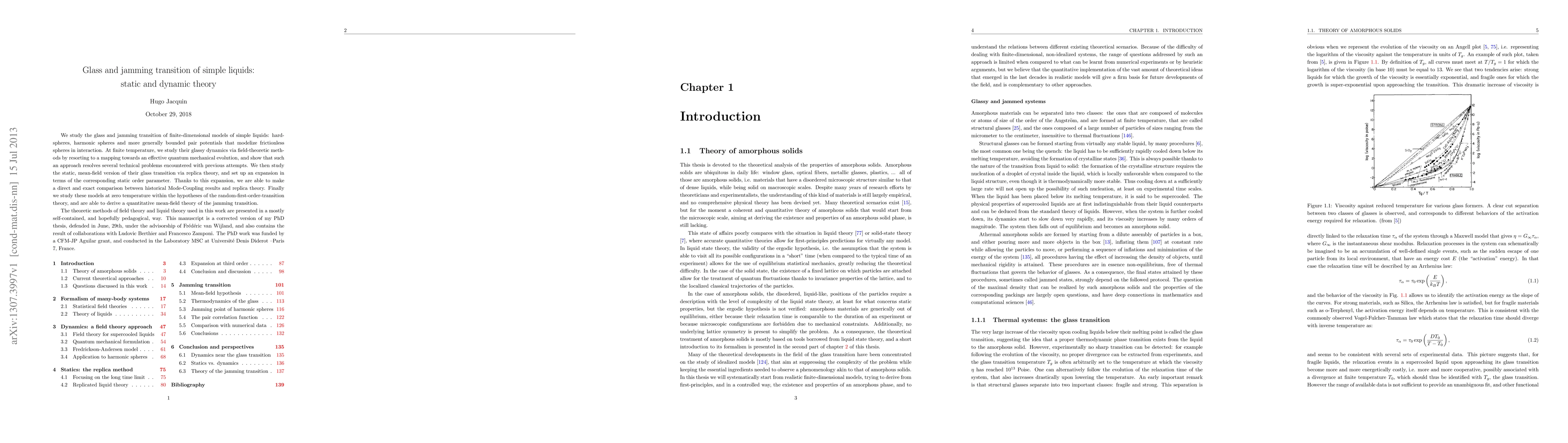 This paper explores the glass and jamming transitions in simple liquid models using field-theoretic methods and replica theory. It resolves technical issues with previous approaches and provides a quantitative mean-field theory for the jamming transition at zero temperature, presenting the theoretical methods in a pedagogical manner.